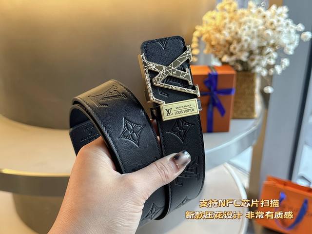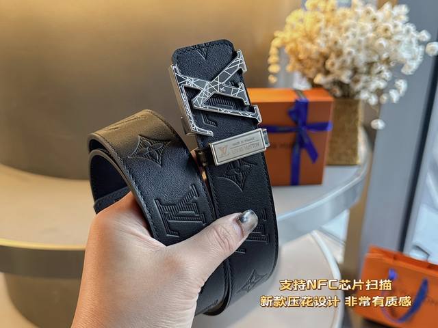 / 支持nfc芯片扫描lv皮带宽度:4.0Cm 专柜同步最新系列,搭配精致雕扣头 媲美代购欢迎对比时尚百搭,品味的体现,休闲高大上! Iphone实物实拍, 腰带上
