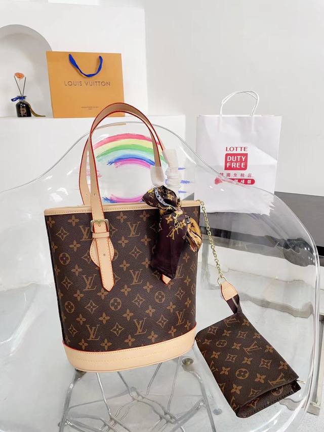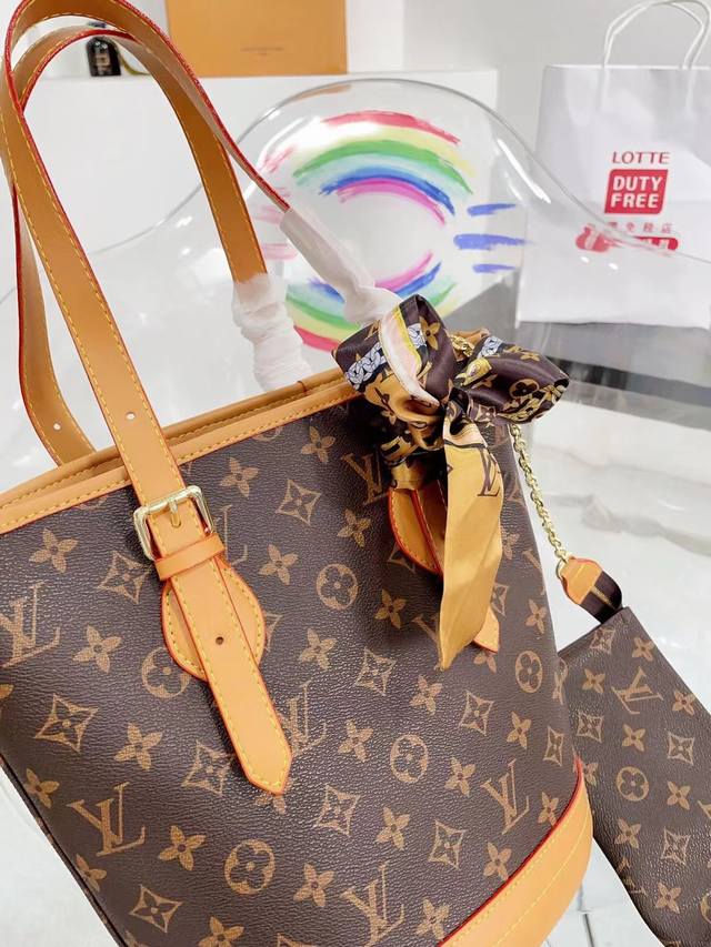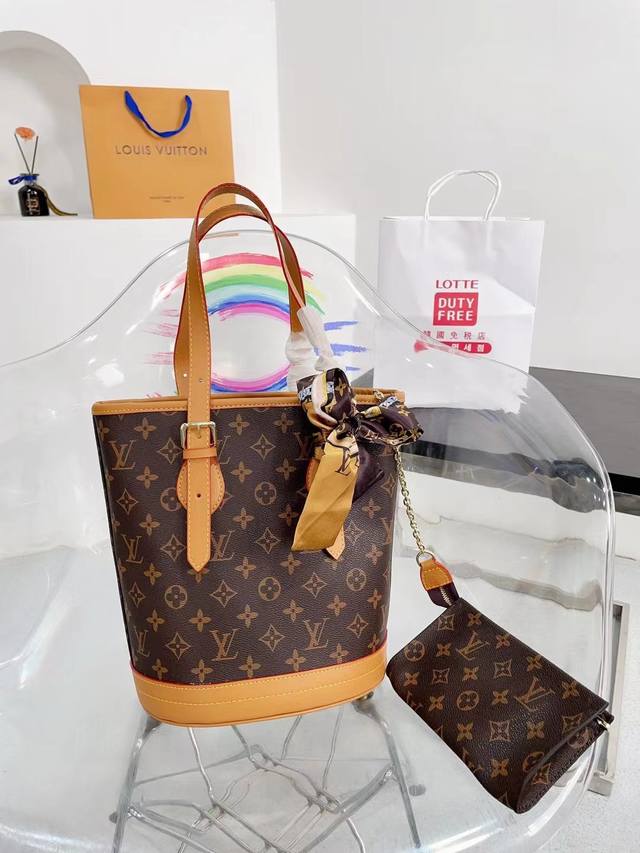 折叠礼盒 黄皮白皮 两色可选 Lv中古水桶大号 凹造型名副其实的水桶 容量超大 日常通勤百搭 复古文艺风春 夏天搭个渔夫帽超出片 或者里面放一些花