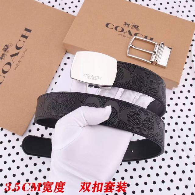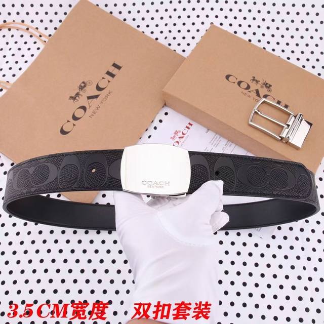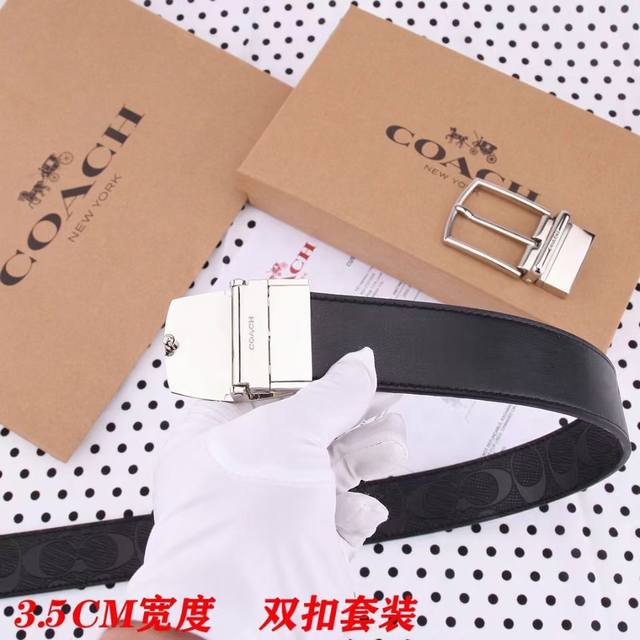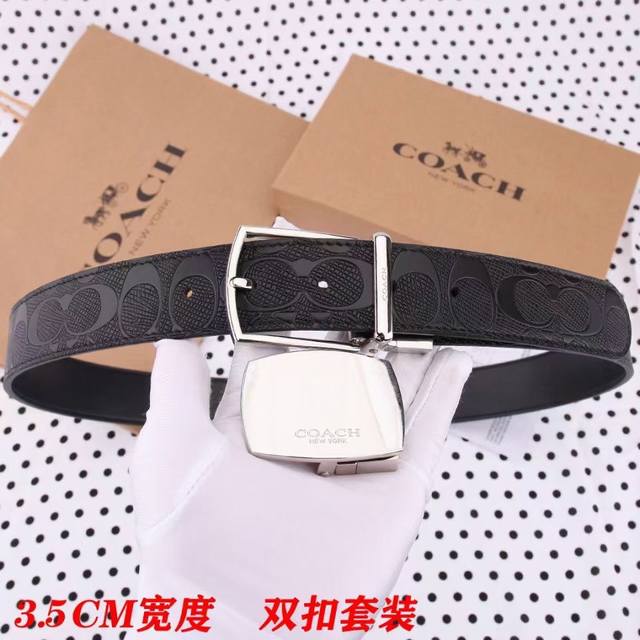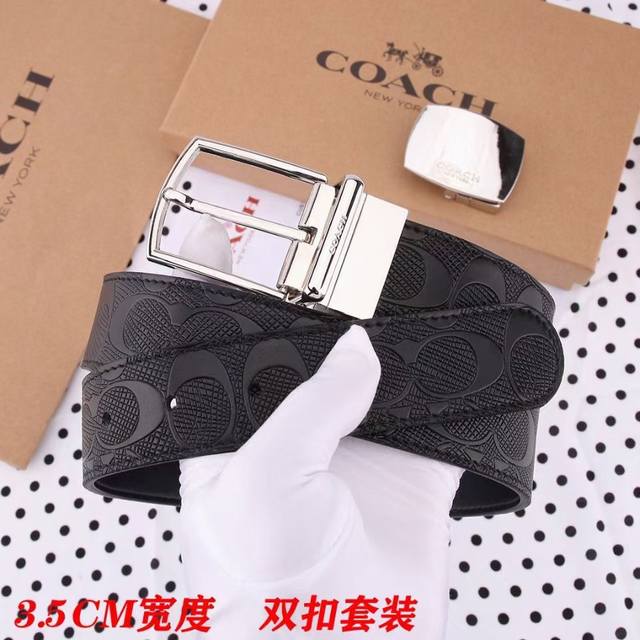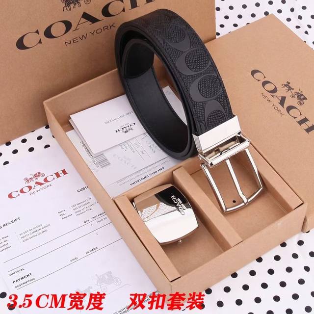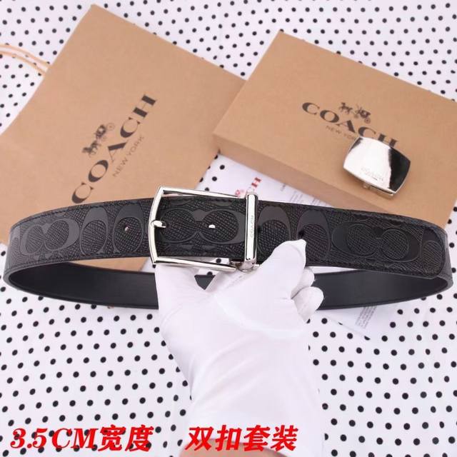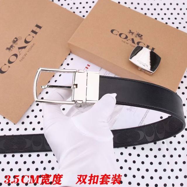 礼物原单货---[飞吻]Coach 蔻驰皮带 双面男士腰带双扣礼盒装皮带,双面都可以用,精致原版扣,宽度3.5Cm私密渠道!专柜原单。