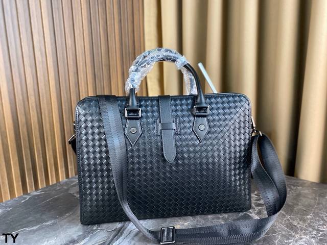Bv 经典编织公文包 简洁设计风格,编织是 Bv Logo性的标识,轮廓清晰,功能设计合理,空间大,配有可拆卸可调节肩带,稳重不失时尚感,低调、奢华,非常适合商务男士或者喜欢低调款的人士! 尺寸:39.5*28