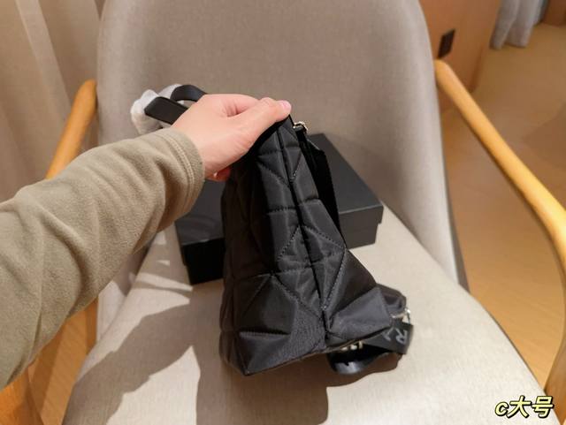 配盒 Size:30×26 Prada普拉达新款尼龙走秀款单肩斜挎包 造型真的是又酷又帅,时尚又实用 多个隔层,方便收纳和分类~...