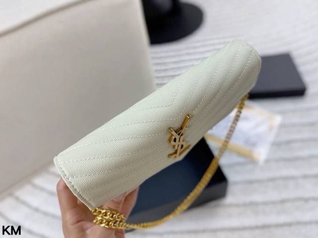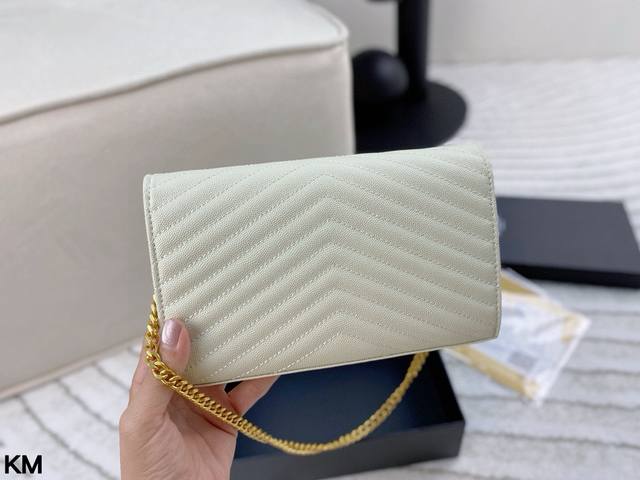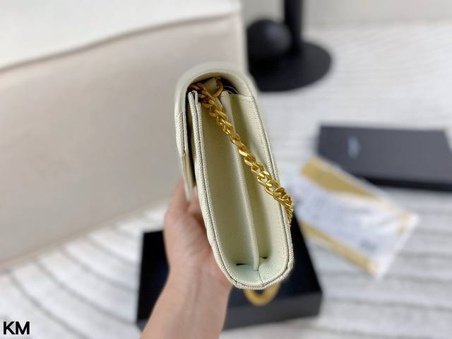 配盒 Ysl Woc鱼子酱信封包 链条可以调节成斜挎背、单肩、腋下背 鱼子酱皮的颗粒感 肉眼看起来很强 摸起来却很丝滑舒服 包包内侧有很多卡位适合放卡 低调百搭