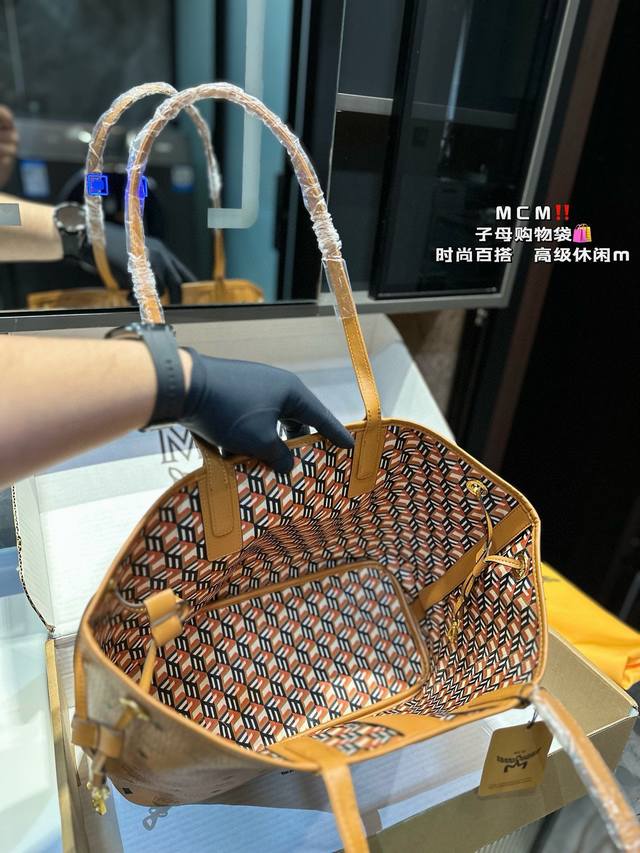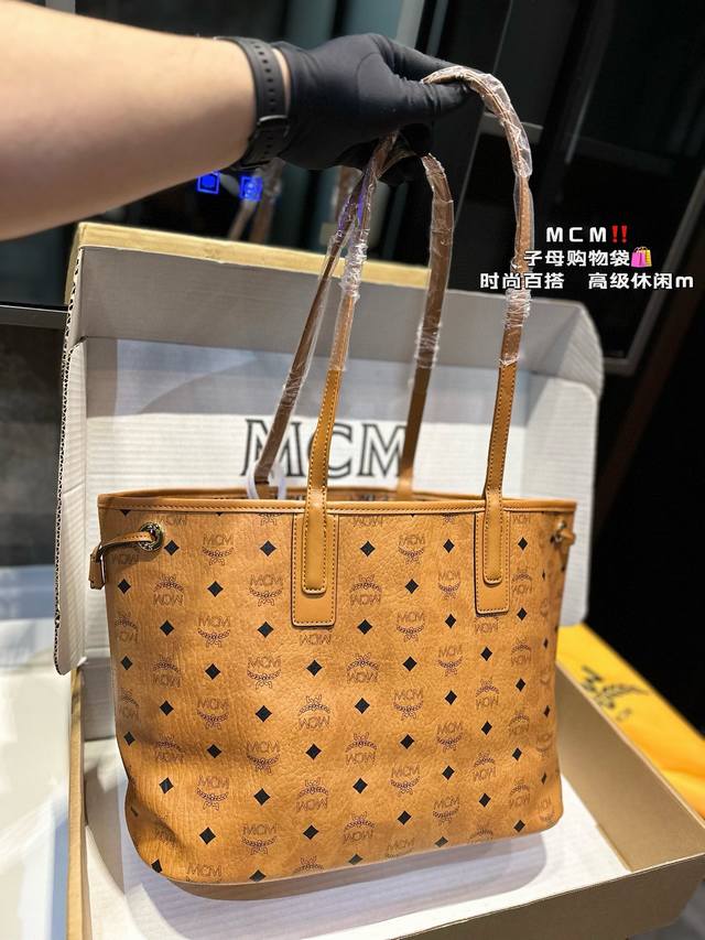 Mcm 托特mcm新款购物袋太可爱了吧!自重又很轻!好适合上班通勤啊!我去店家那里拷贝了尺寸描述!这个包真的很适合喜欢什么都装点的姐妹!水杯.A4文件 竖着能放进去,高度会凸出来 杂七杂八都能塞下!主要是价格不贵!随便造了不心疼!雨伞。饭盒 尺寸:36*17*27Cm