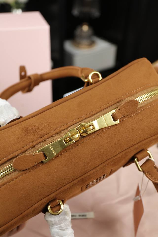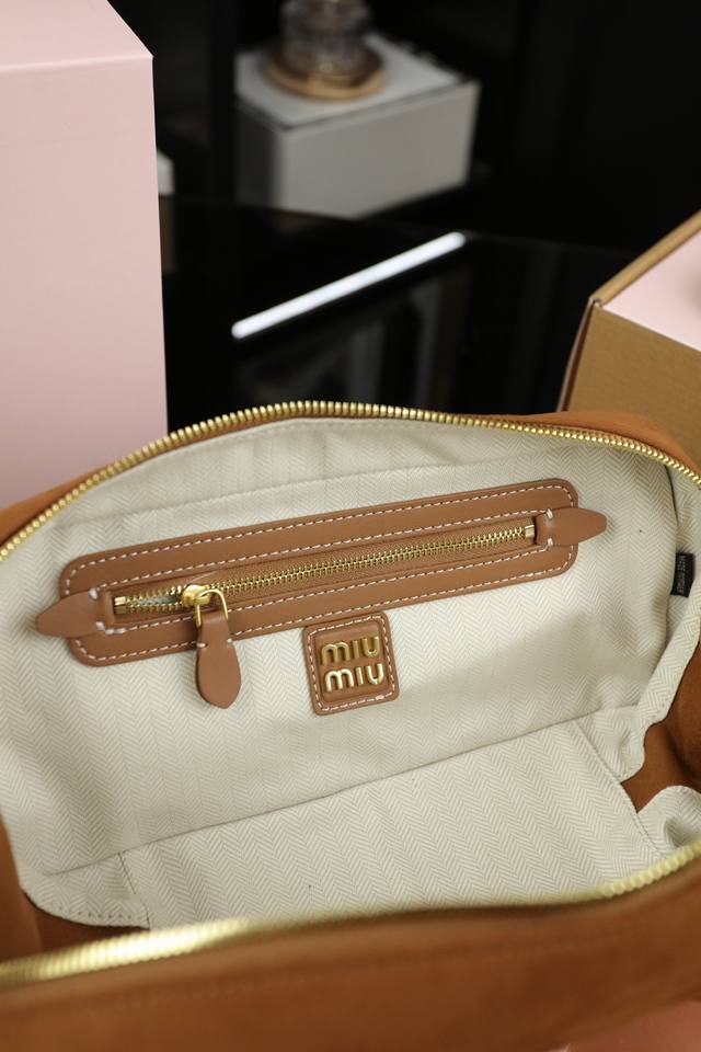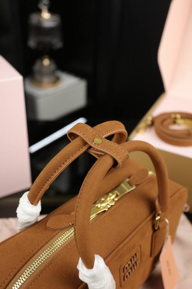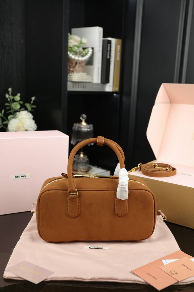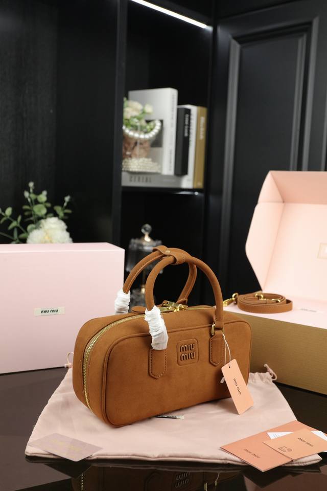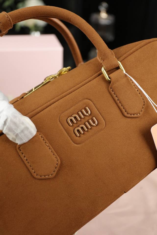 Miu Miu缪缪 Arcadie 麂皮绒 保龄球公文包包手提单肩斜挎包