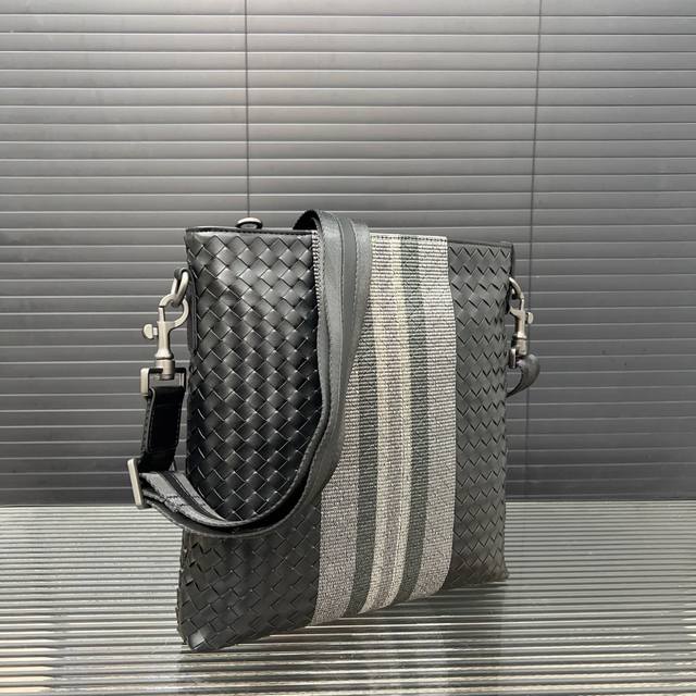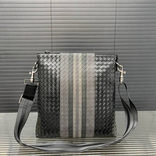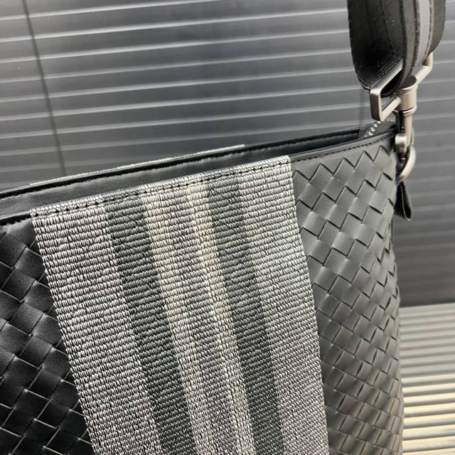 Bottega Veneta 葆蝶家 手工编织男士单肩包 斜挎包 采用精湛镶嵌细工,经典百搭 实物拍摄 原厂原版面料 配送防尘袋 24 X 26 Cm。