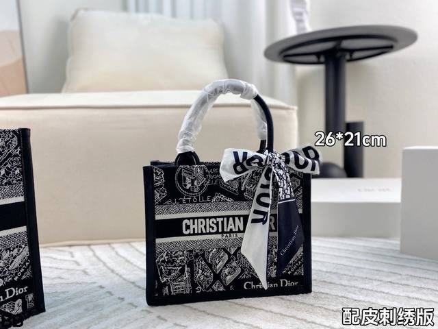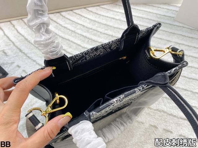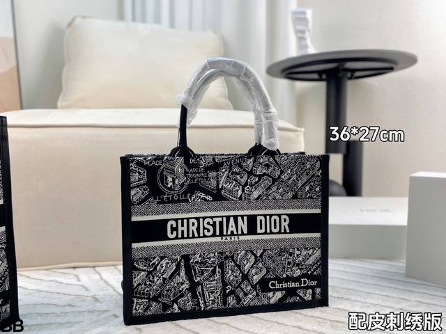 Dior Tote时尚女孩的必备单品 创意总监maria的主打包包 通体刺绣搭配黑色标志性“Dioroblique”图案正面饰以“Christiandior”标志饰 以黑色小牛皮配有可拆卸可调节肩带 优雅实用 容量超级大 而且上手很轻盈哦 时尚潮人必备!