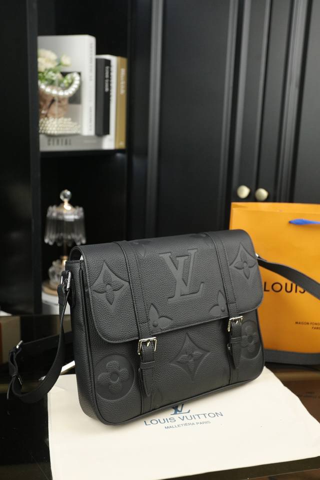 Lv 荔枝纹 压印 邮差包单肩斜挎包