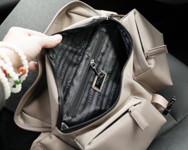 配盒尺寸26.21 普拉达 麂皮翻盖降落伞 Prada 质感很高级 容量超级大也很耐用 日常出街背它回头率百分百 就是这种随性慵懒感