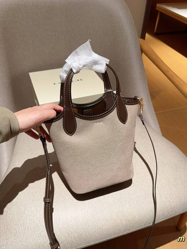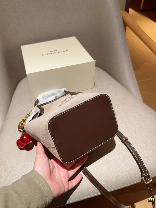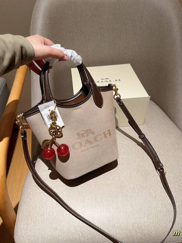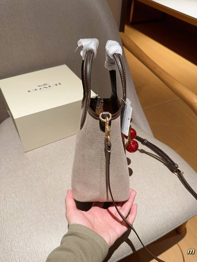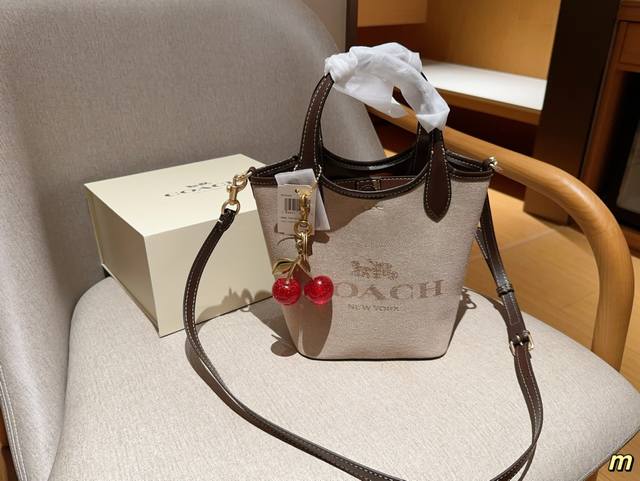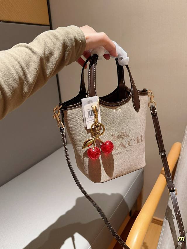 / 配送樱桃挂件 Coach蔻驰 新品hanna帆布菜篮子水桶包 尺寸16×18×12 礼盒包装
