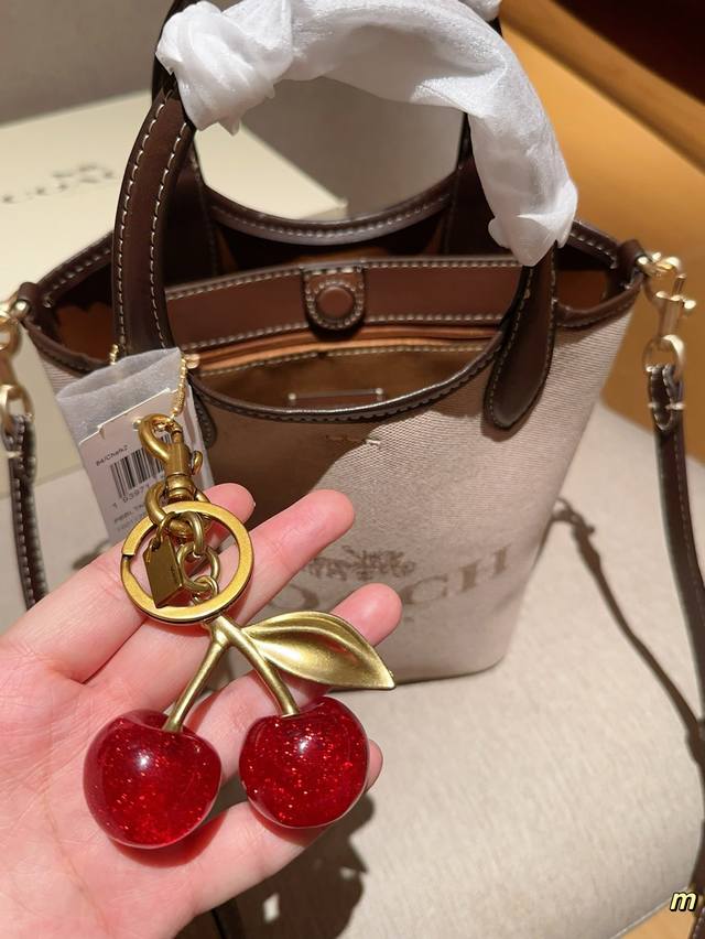 配送樱桃挂件 Coach蔻驰 新品hanna帆布菜篮子水桶包 尺寸16×18×12 礼盒包装