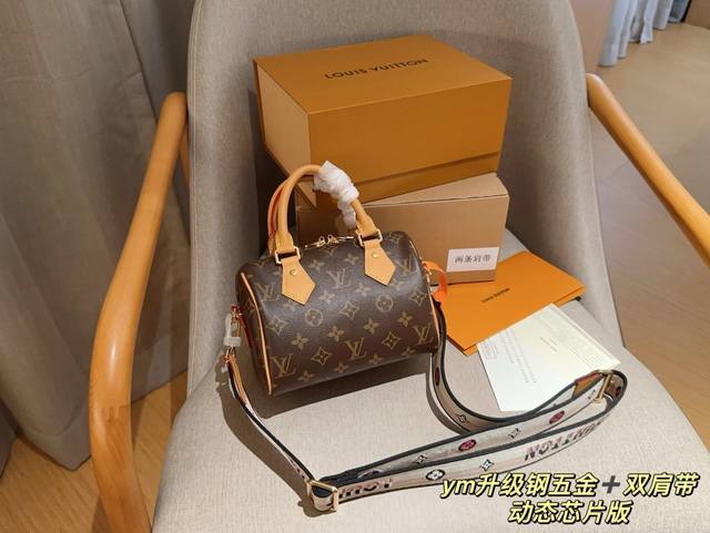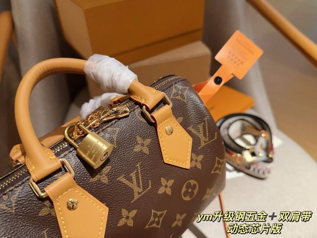 / 双肩带 升级钢五金动态芯片版 Lv 路易威登 Speedy20枕头包蜜蜡黄皮 尺寸20Cm 礼盒包装飞机箱