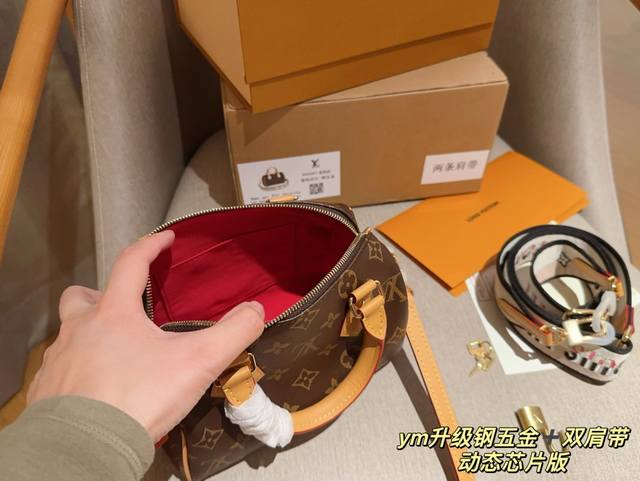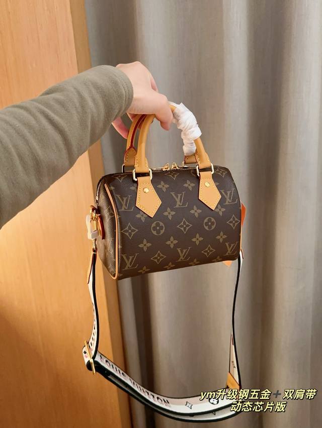 双肩带 升级钢五金动态芯片版 Lv 路易威登 Speedy20枕头包蜜蜡黄皮 尺寸20Cm 礼盒包装飞机箱