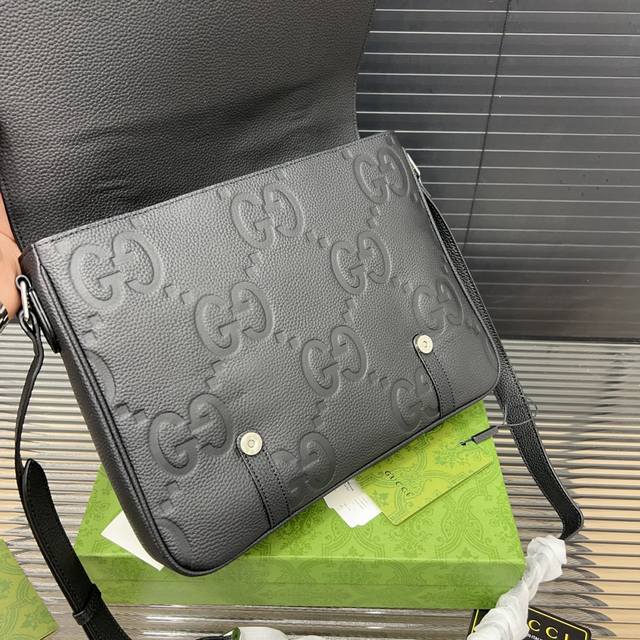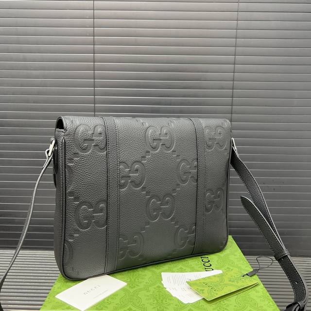 / Gucci 古奇 Gg牛皮翻盖邮差包 男士休闲单肩斜挎包 超大容量 电镀激光雕刻五金 高品质 附带 防尘袋 规格 24 X 30Cm