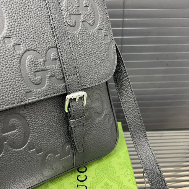 Gucci 古奇 Gg牛皮翻盖邮差包 男士休闲单肩斜挎包 超大容量 电镀激光雕刻五金 高品质 附带 防尘袋 规格 24 X 30Cm