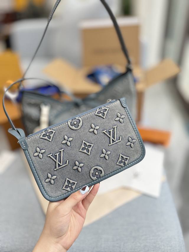 配全套礼盒丝巾 Size:29×24 Lv Carryall 丹宁牛仔 子母包手提单肩包托特包 带有蝴蝶结的腋下包喜欢吗,内附一只收纳零钱包,性价比颜值超在线了