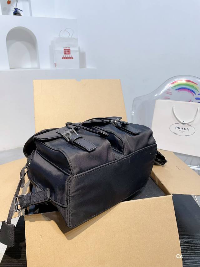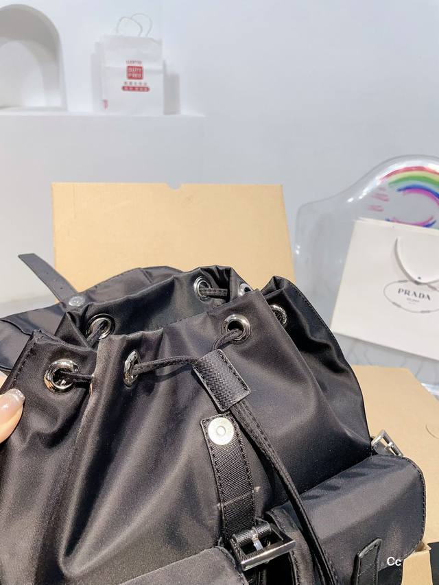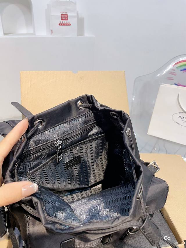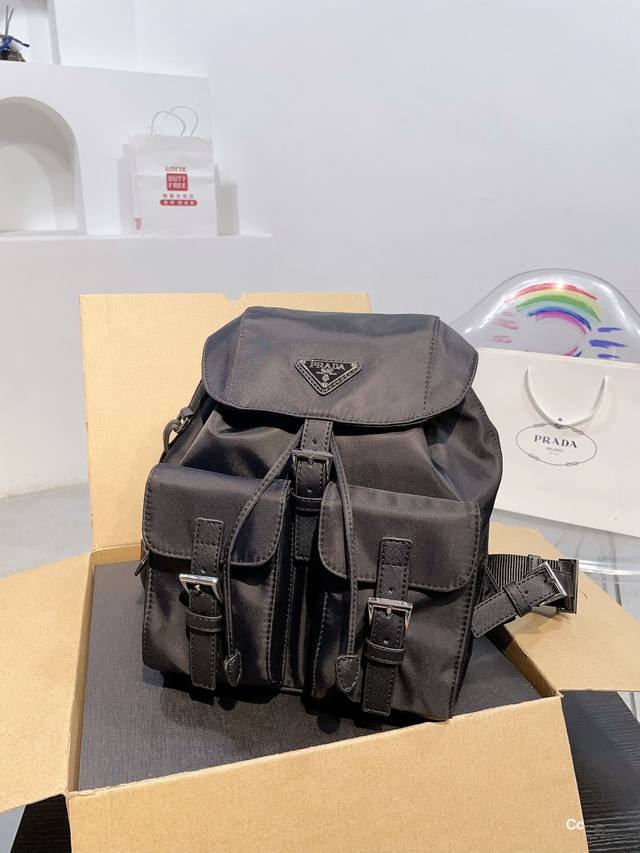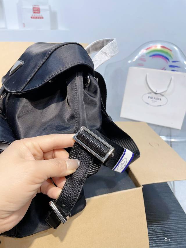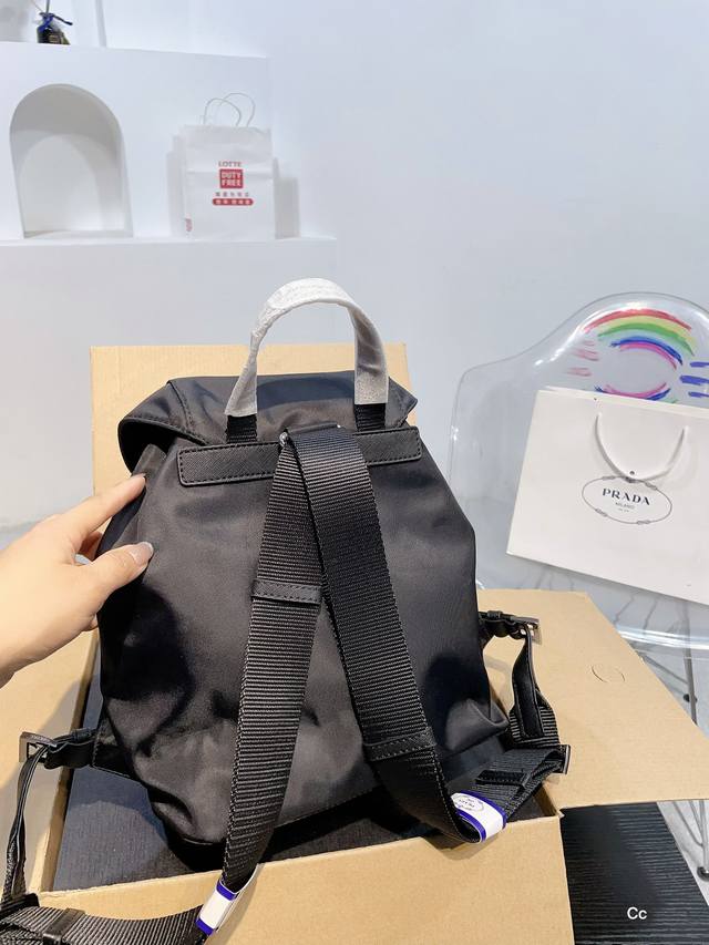 配盒 普拉达尼龙双肩背包! 上班通勤、旅游、都是不错的选择颜值在线,容量充足,轻便实用! 尺寸24.28Cm