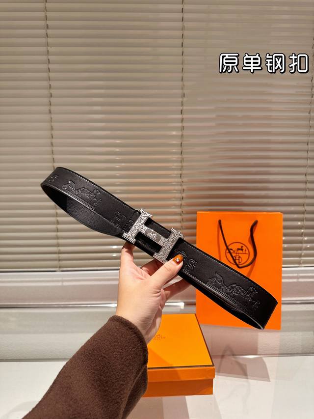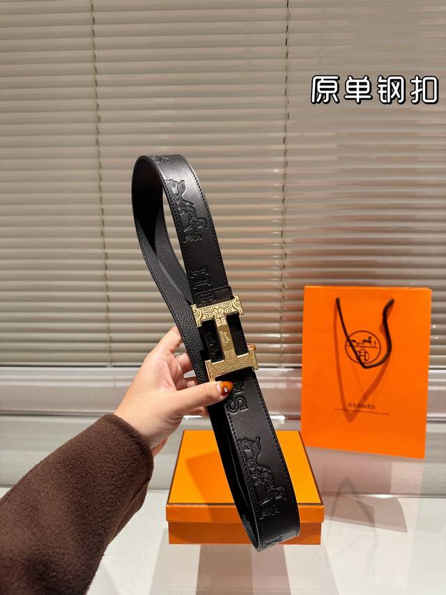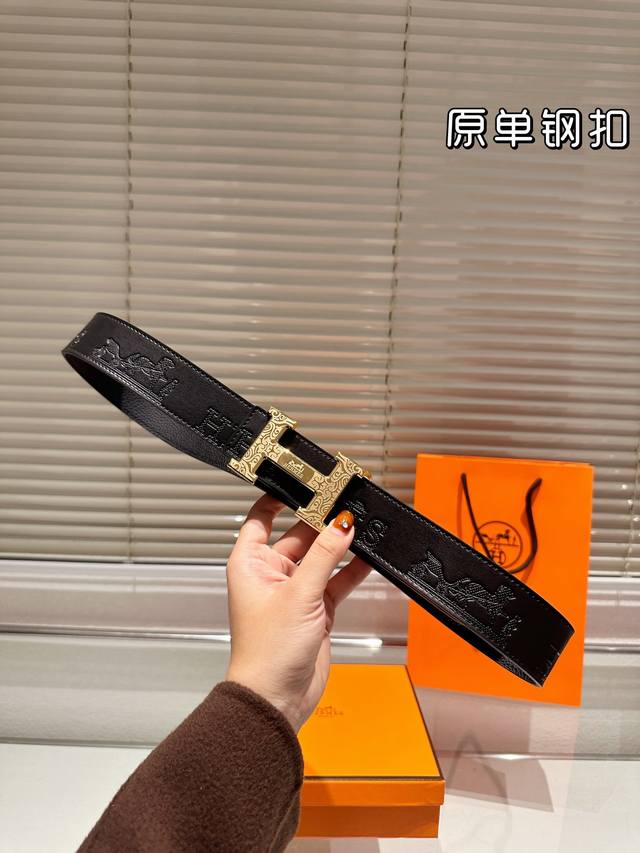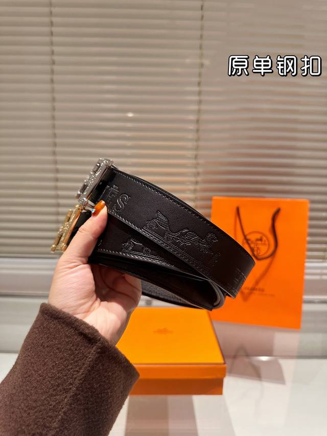 / 钢扣 高版本!腰带爱马仕牛皮皮带~热门款 男女通用皮带里面最火的版本啦~质量很好 全套包装!五金绝对不褪色 皮带头和专柜一样的哦~ 配礼盒手提袋发票