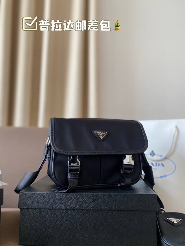 Prada 普拉达尼龙布单肩 斜挎邮差包单肩包 男士斜挎包 经典百搭 尺寸25。Jh