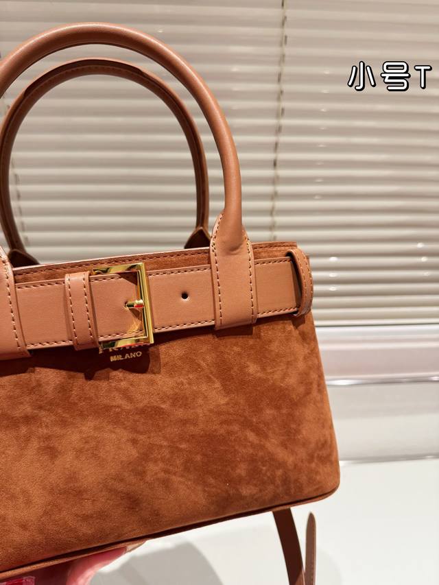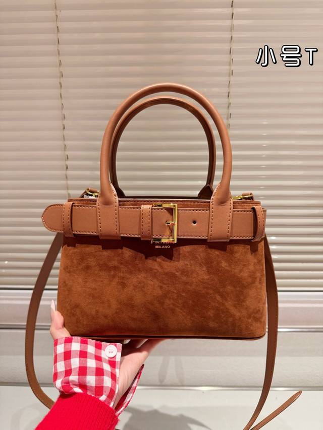 以可替换束带和可拆卸可调节的长肩带,为整个造型增添独特的个性点缀。尺寸 大号 35 25Cm 小号 28 18Cm