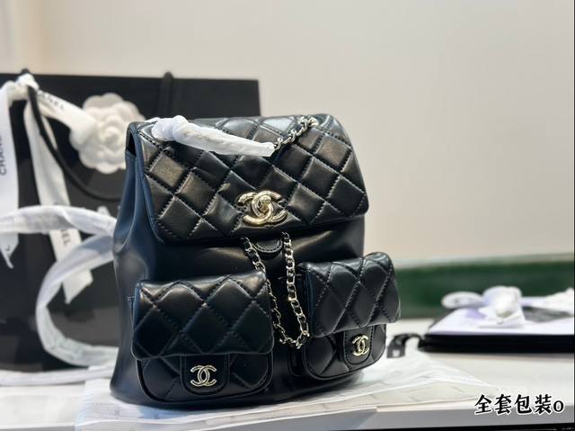 / 全套包装 Chanel23P Duma中号双肩包 口袋设计加上三个chanel双clogo整包很立体有型 尺寸20*20