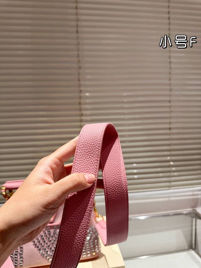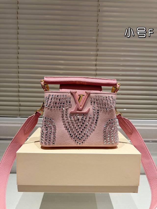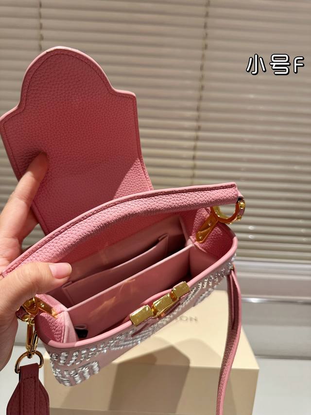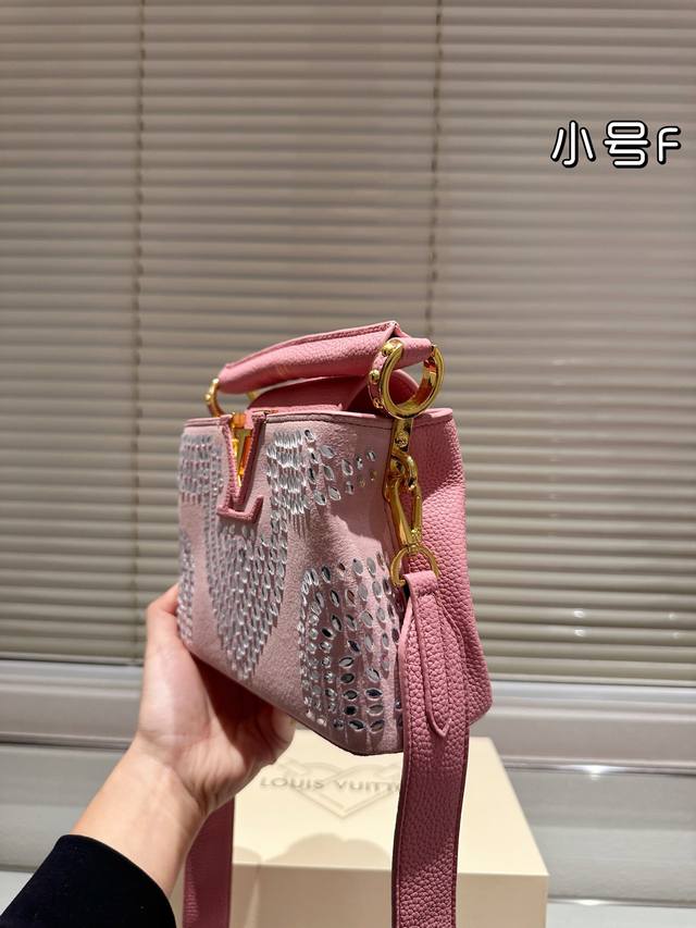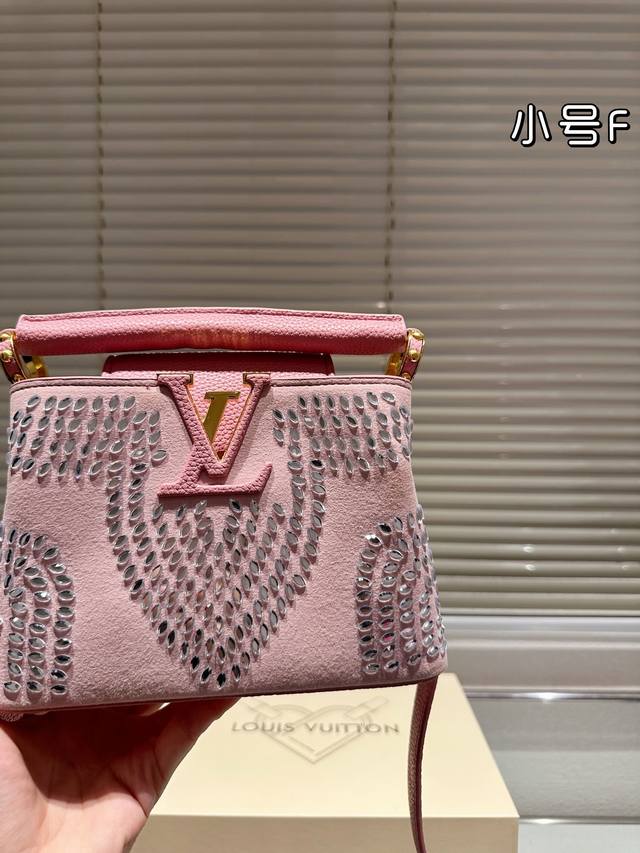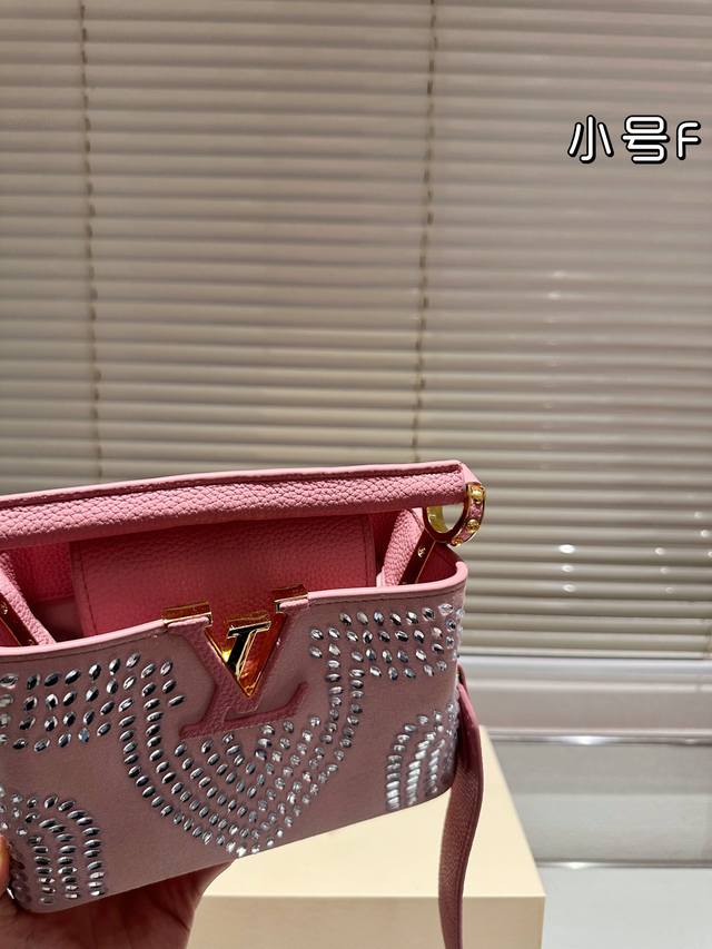 大号 折叠盒尺寸27.17 小号 折叠盒尺寸20.13 Lv Capucines水钻手提包 Blingbling的满钻包面 吸睛亮眼的高贵感扑面而来 容量可够日
