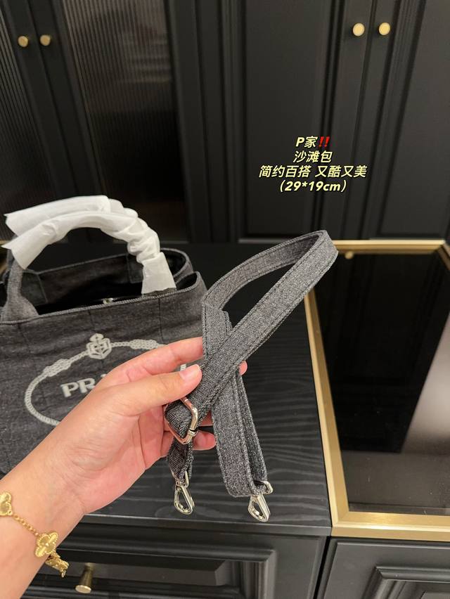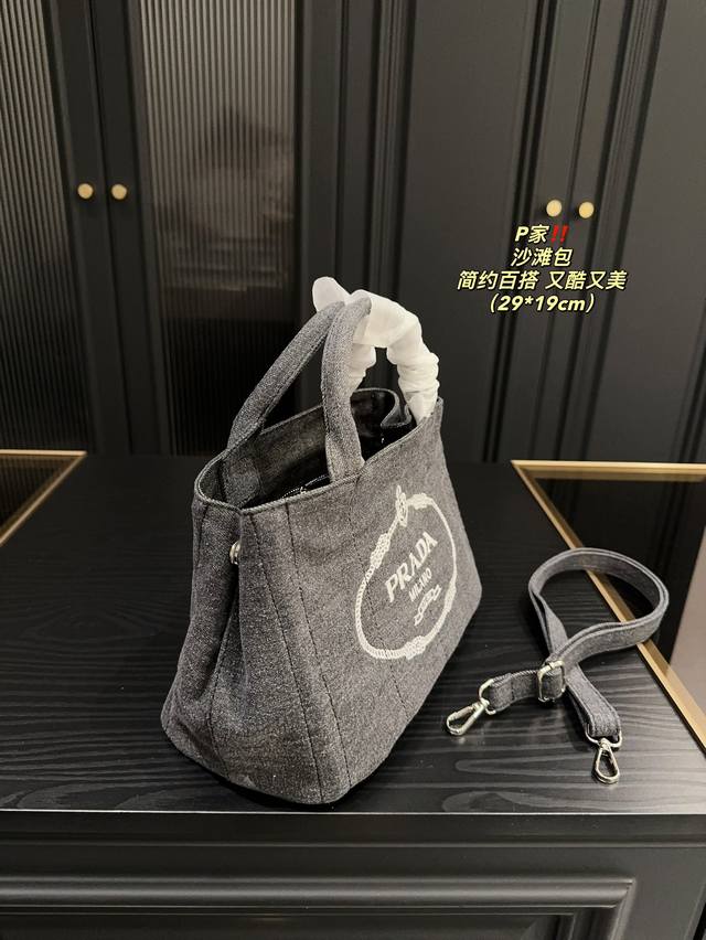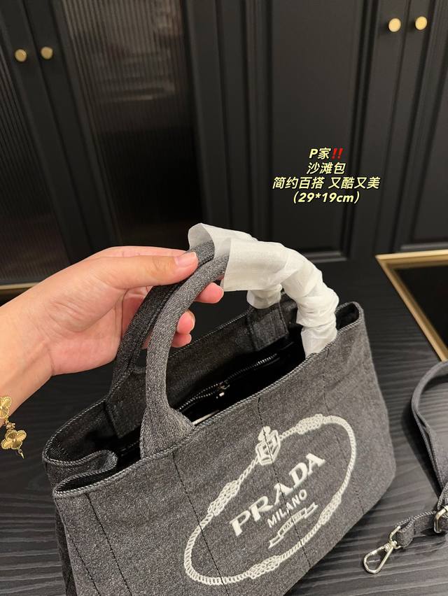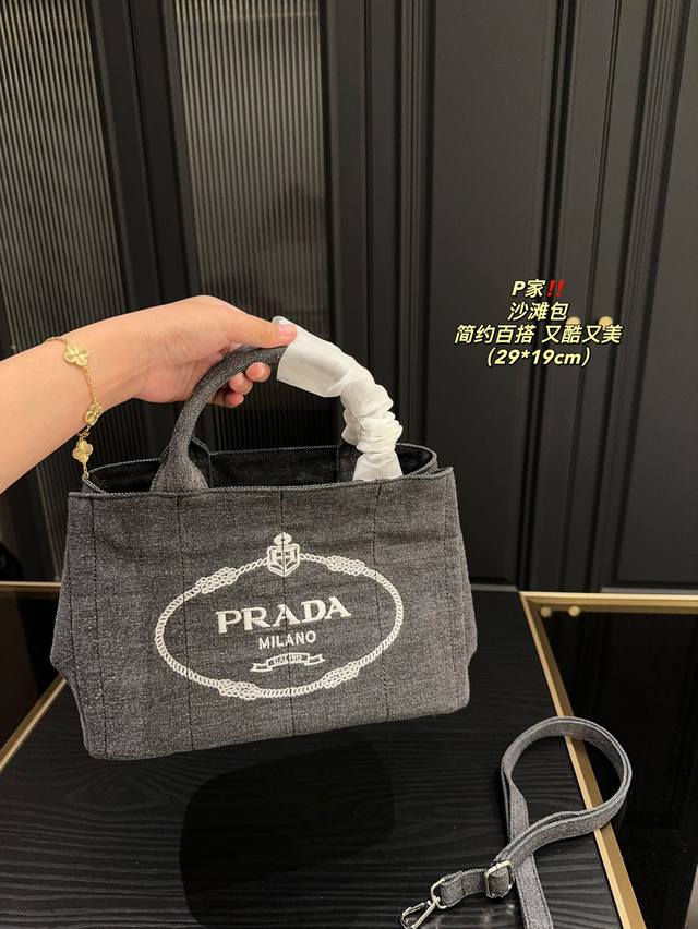 尺寸29.19 普拉达 沙滩包 Prada 正面印花 侧三角标 可以装ipad、水杯等 适合休闲or酷穿搭