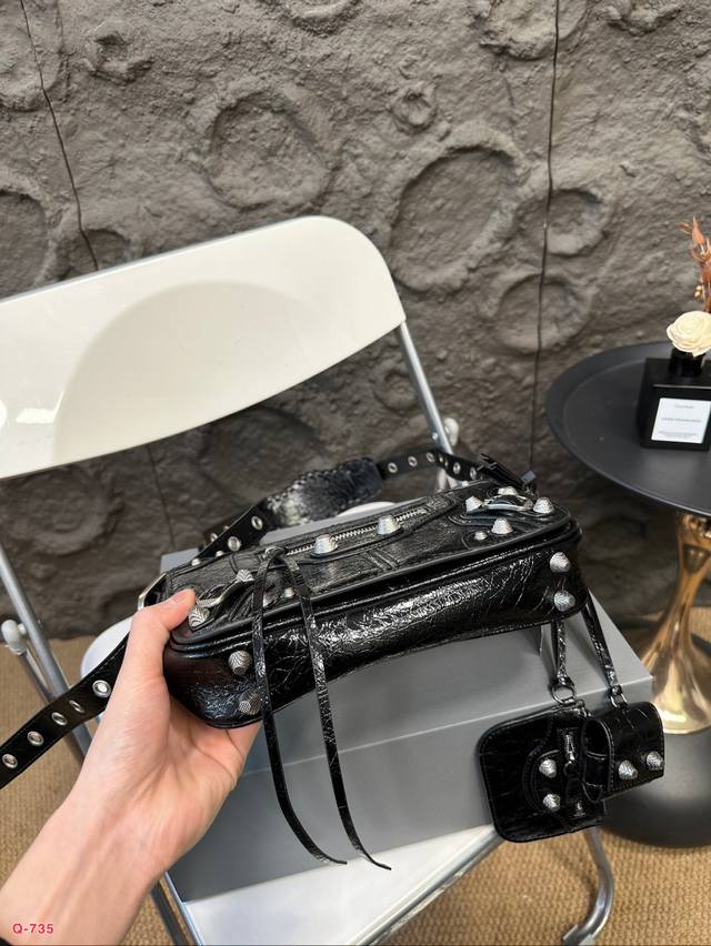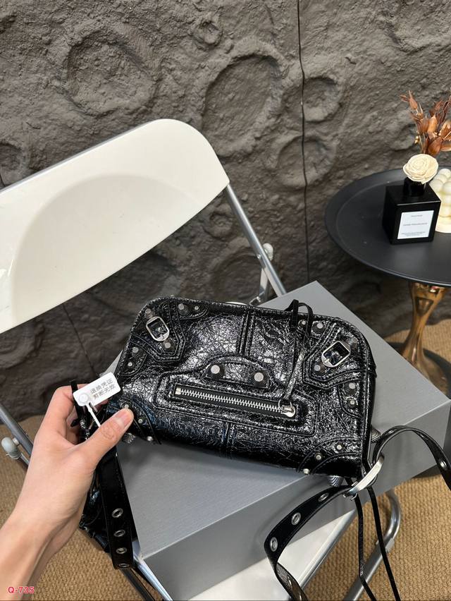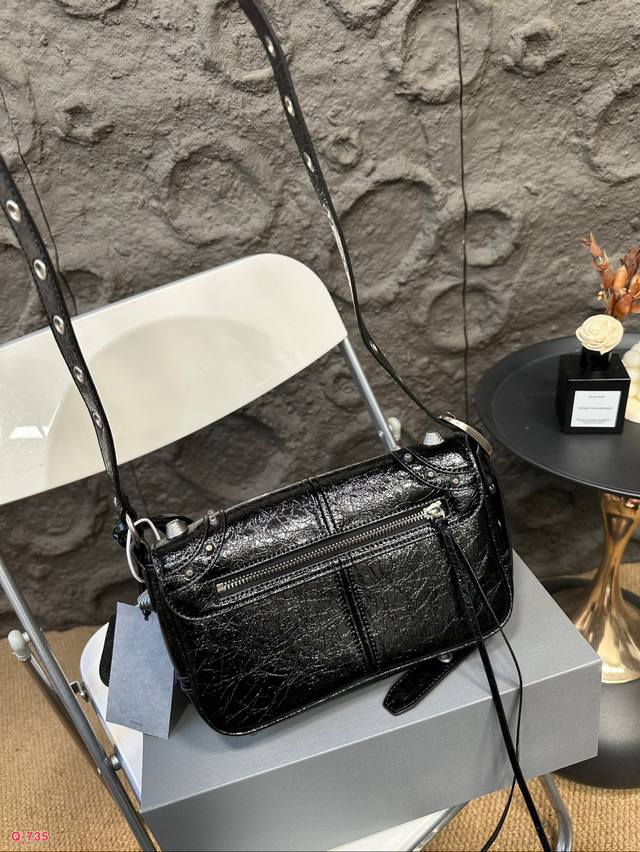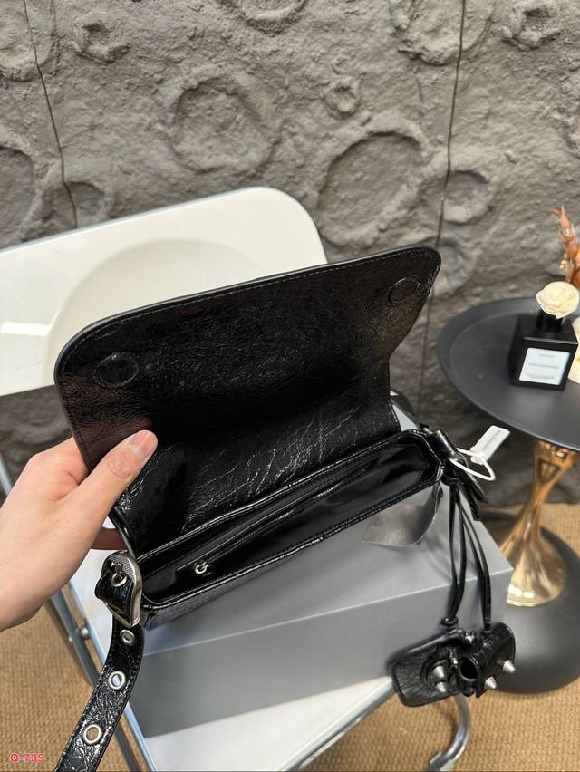 巴黎世家推荐le Cagole 相机机车翻盖包牛皮油蜡黑今年最帅的包包,女生背也超酷