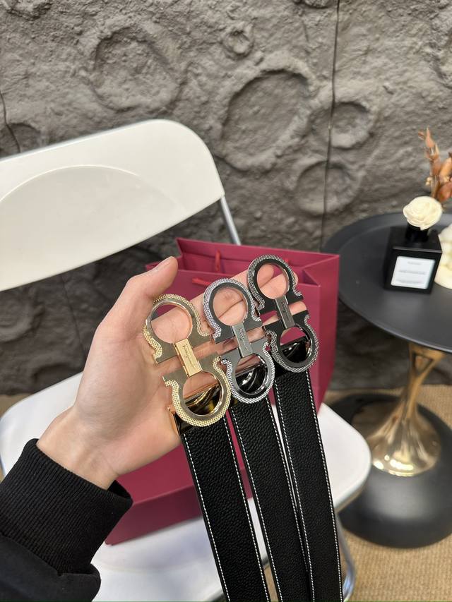 菲拉格慕 女款 专柜同款在售 種草拔草都要自留款 進口原版皮制作 搭配原版gancio五金 2.5Cm规格 可调式皮带 看图下单 双面可用...
