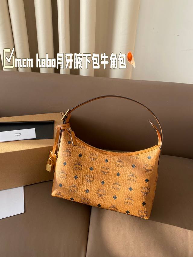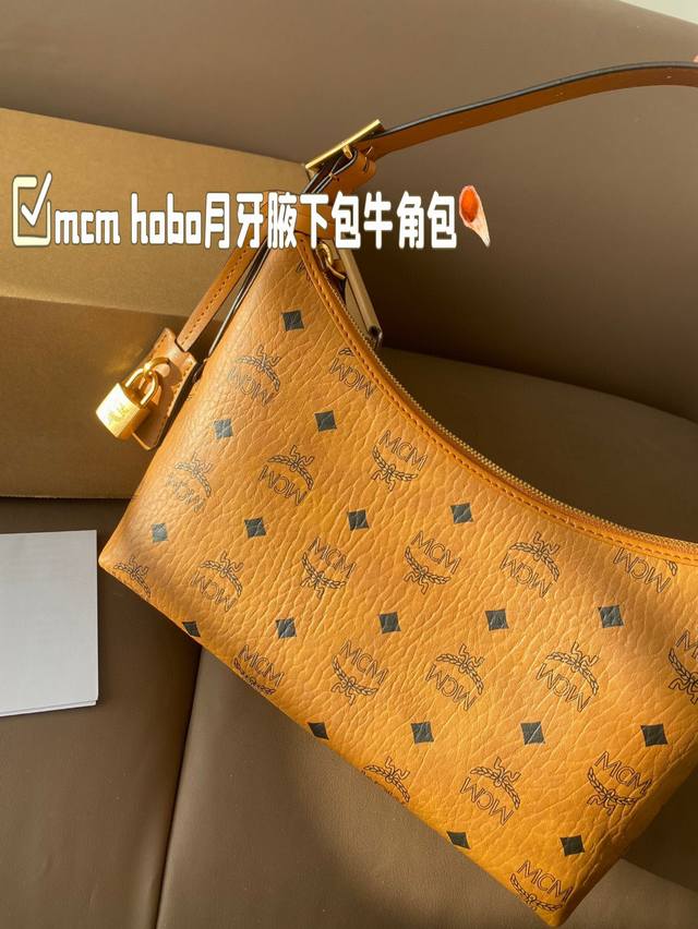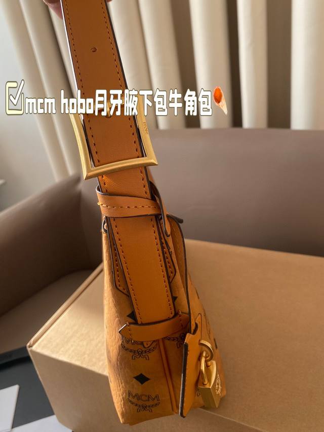 配飞机盒 Mcm Hobo月牙腋下包牛角包 这也太好看了吧! Mcm 新品 Hobo包 牛角包 Mcm 的新品牛角 真的是今年的王炸款 有两根肩带,多种背法,