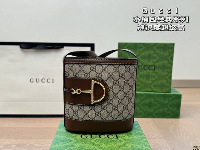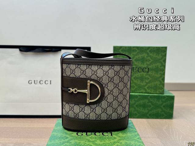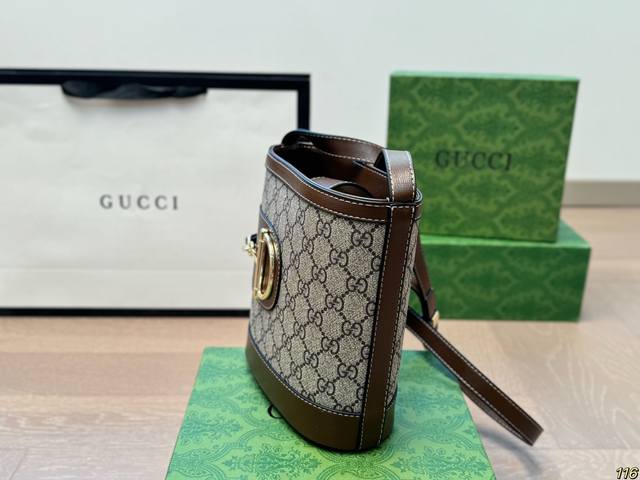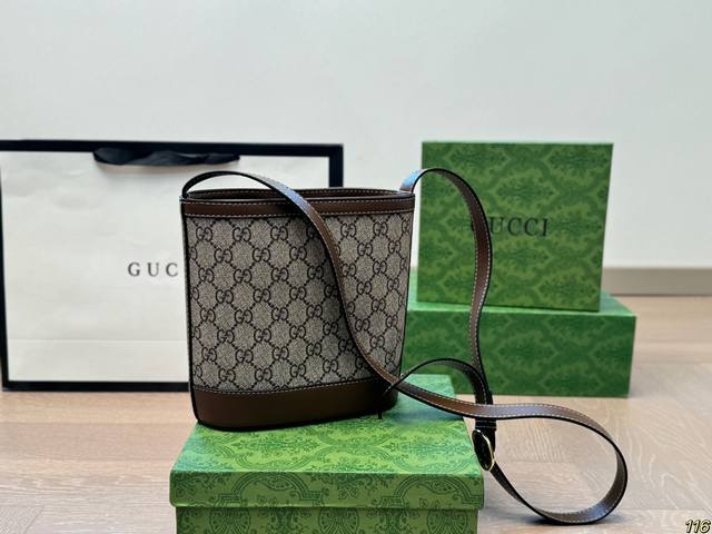 配盒 酷奇gucci水桶包经典系列 包型十分特别 具有辨识度超级高 保持了复古的年代感 又不失现代时尚风格 尺寸:18 19