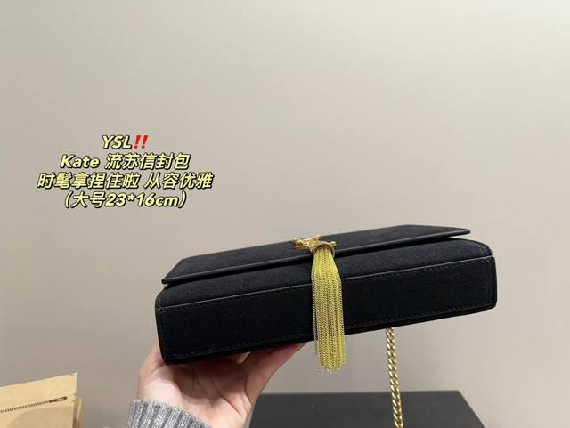 / 大号 配盒尺寸23.16 小号 配盒尺寸20.14 圣罗兰 Kate 流苏信封包 Ysl 时髦拿捏住啦 不显老气好好搭啊 而旦貌美气质加成好高的呀~ 爱死了这份
