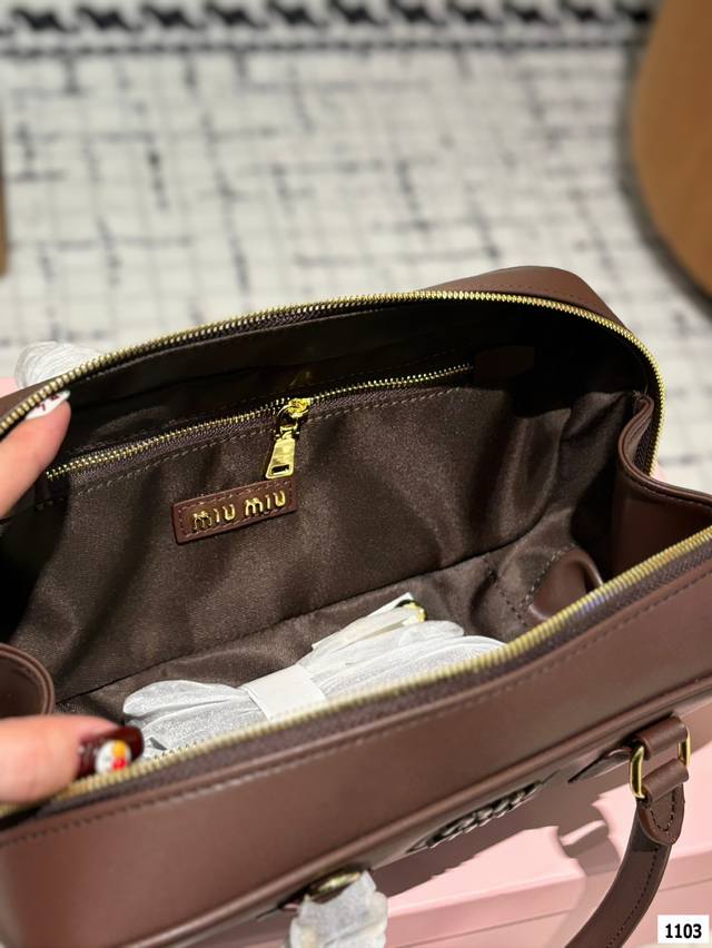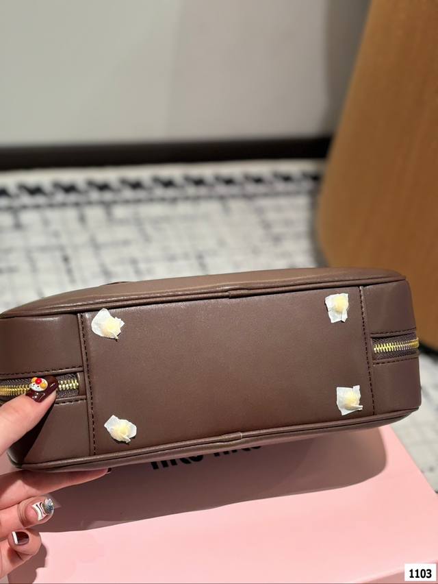 不得不承认miumiu现在的产品越来越受欢迎了,不仅仅女生的适龄段继续年轻化,关注度也越来越高,而且营销的确也跟得上,时装周期间的热搜数量就很说明问题~尺寸:大号28 14。小号22 11