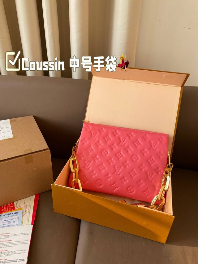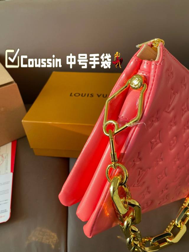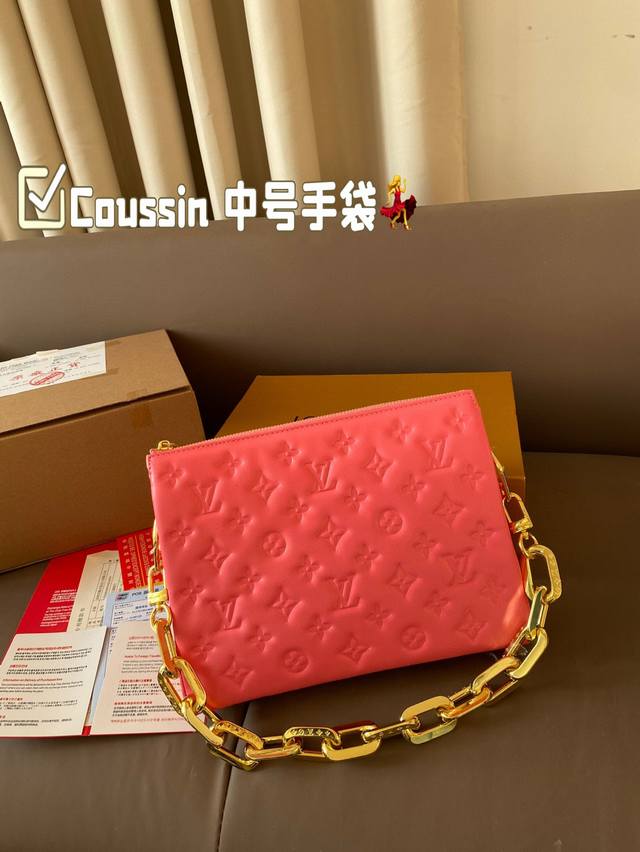 Coussin 中号手袋,采用蓬松羊皮革压印 Monogram 图案,以舒软质感呈现紧凑构型。内隔层增添功能性,昼夜场合皆宜,明星同款必备。粗犷链条和纤细皮革肩带均可拆卸,带来多种造型选择。