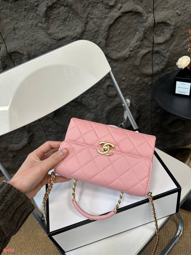 配盒 Size :20*12Cm 小香家 Chanel 23B 编织双C手柄 Cf大Mini 可以手提的!包包很实用! 黑金牛真的好高级 慵懒时尚的法式 隔着屏