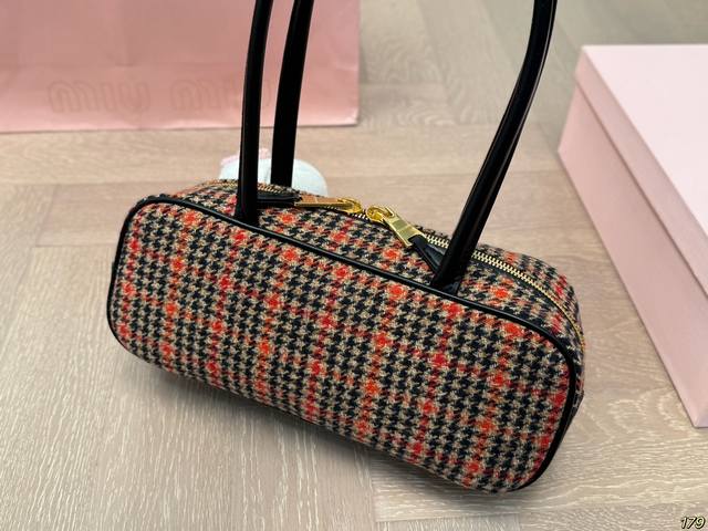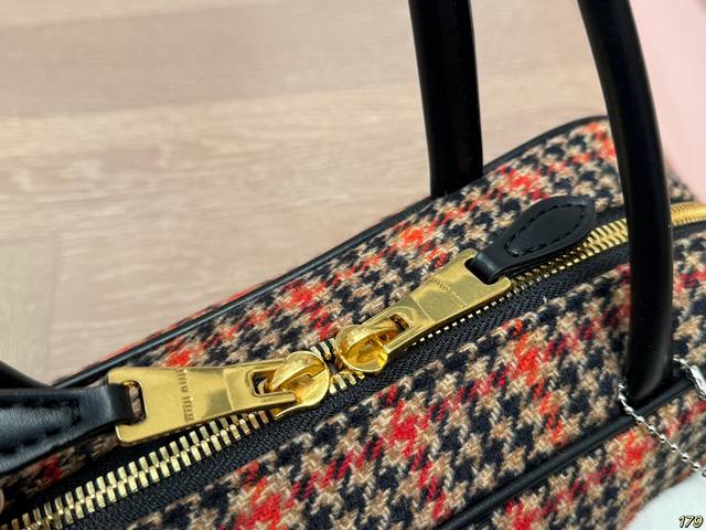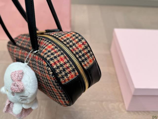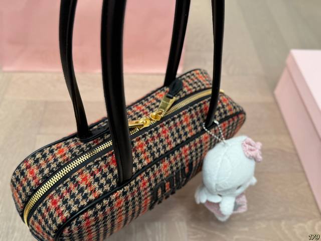 / 配挂件 缪缪miumiu 千鸟格保龄球包 精致美丽 高级优雅 很好驾驭,不挑衣服,不挑季节 一年四季都可,可盐可甜 高个子小姐姐背,气质御姐范 小个子的小姐姐背