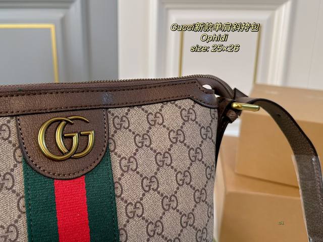 / 配盒 Size:25×26 Gucci 古驰老花ophidi单肩斜挎包 方方正正的包型很好搭衣服! 经典双g标识,辨识度超高 肩带调节,空间超大~ 出门超方便,