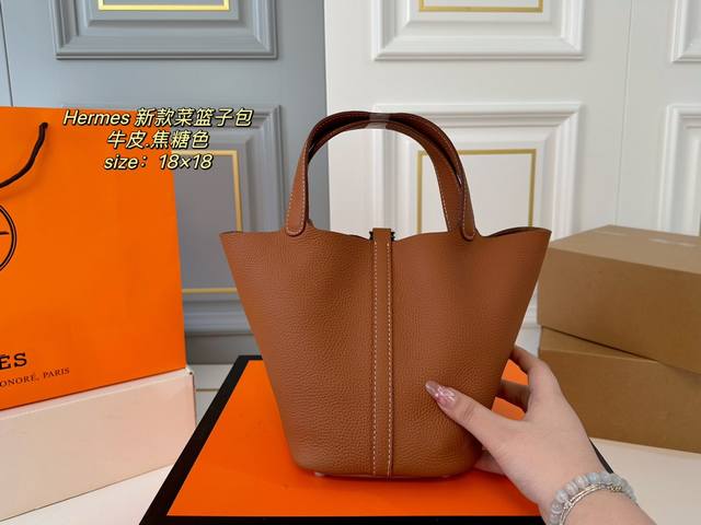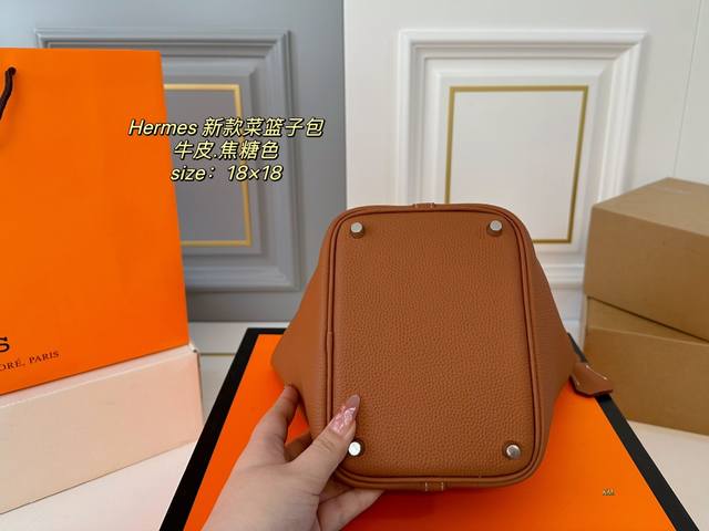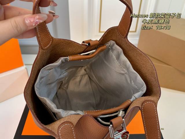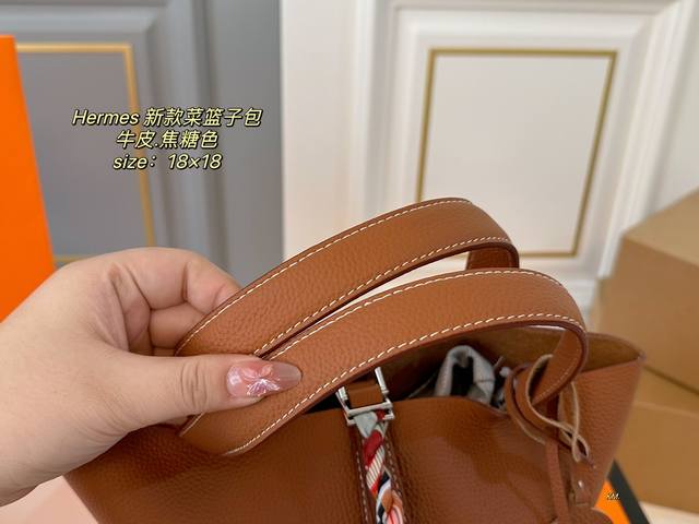 牛皮 折叠盒 Size:18×18 Hermes 爱马仕秋冬新款菜篮子 牛皮材质触感柔软质感,配有内胆 大方的桶形设计,敞开式的开口~ 空间超可,满足日常出行