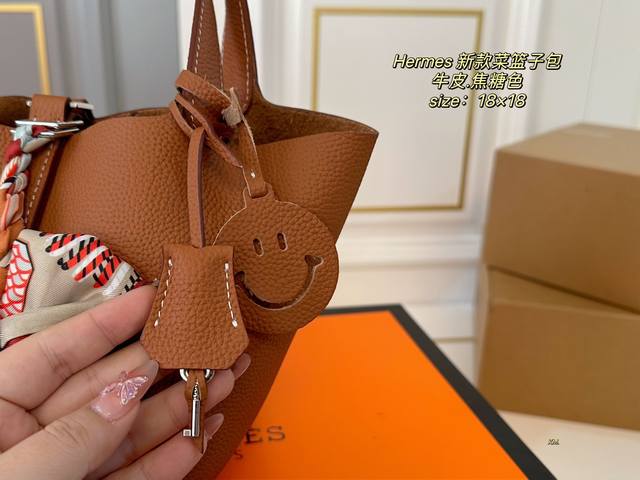 / 牛皮 折叠盒 Size:18×18 Hermes 爱马仕秋冬新款菜篮子 牛皮材质触感柔软质感,配有内胆 大方的桶形设计,敞开式的开口~ 空间超可,满足日常出行
