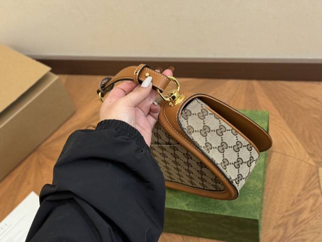升级版 折叠礼盒手提袋 貌美如花的1955Mini Gucci复古马鞍包 真的好好看!专柜对版高版本 经典的马衔扣+Monogram+勾边设计...