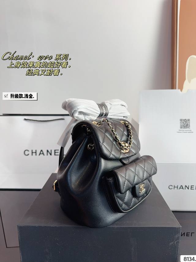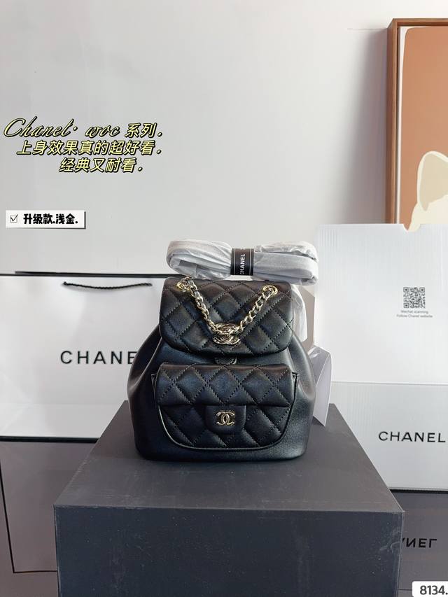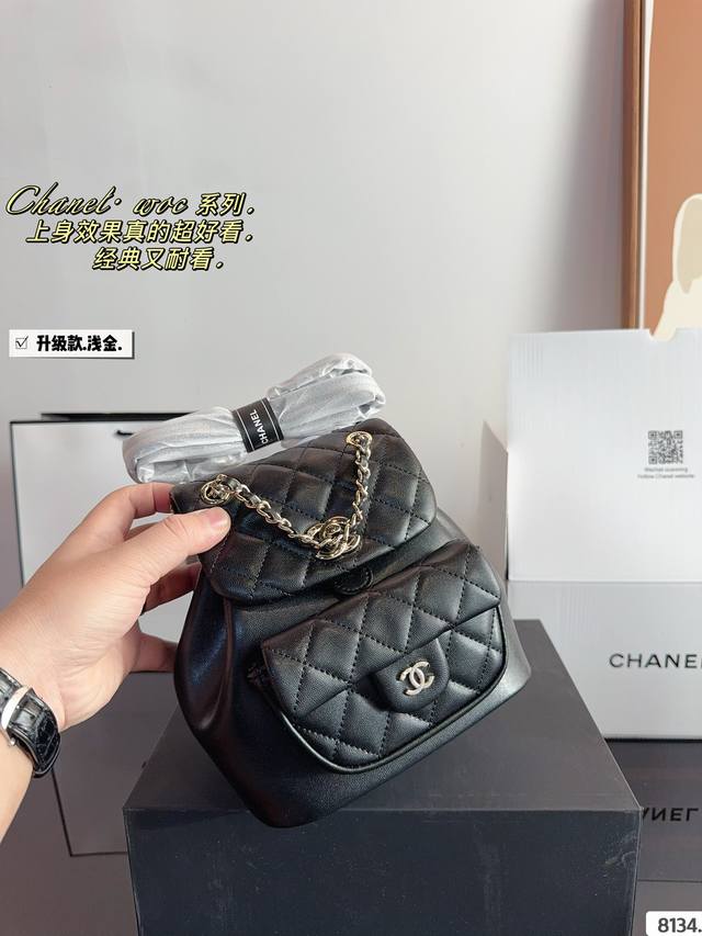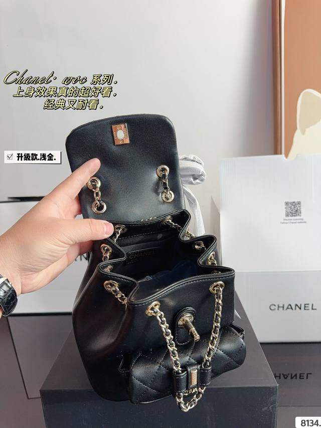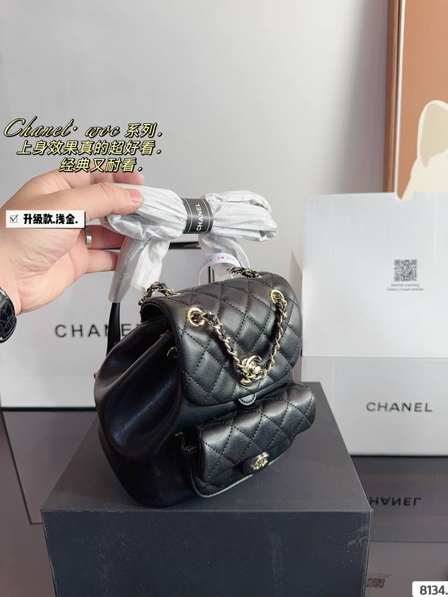/ 配礼盒. 香奈儿 双肩包duma 淡金扣,选了耐用的 看似小巧精致,但是日常出门所需的用 品都是可以装下的。 越看越好看容量 优秀解放双手,可单肩双肩手提,不过