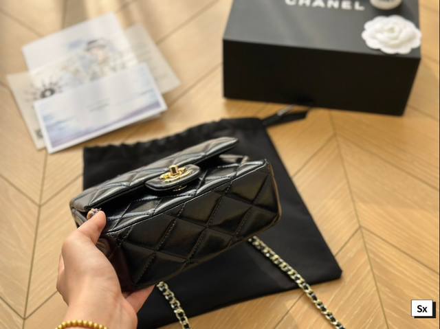 每一款chanel包都仿佛是一件艺术品,承载着优雅与奢华。菱格纹的优雅,双c标志的璀璨,让你在人群中脱颖而丑无论是搭配日常休闲装还是正式礼服,Chanel包都能为你的造型加分不少拥有一只chanel包,不仅是拥有一个时尚配饰,更是拥有一份对美的追求和对品质的执着 尺寸18*12Cm