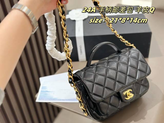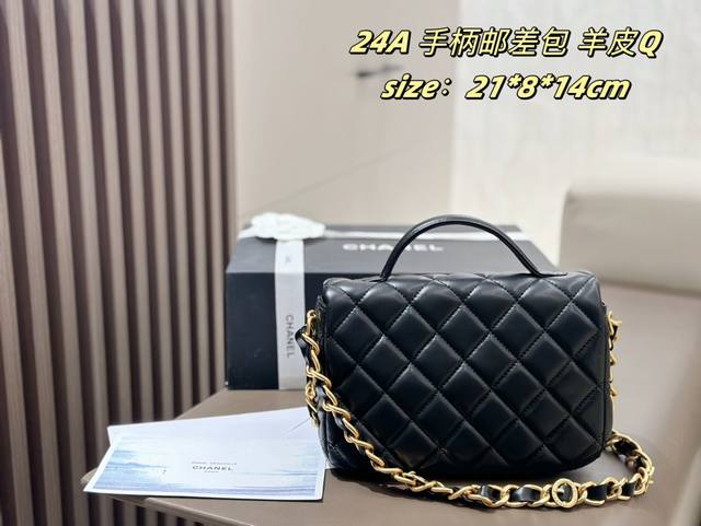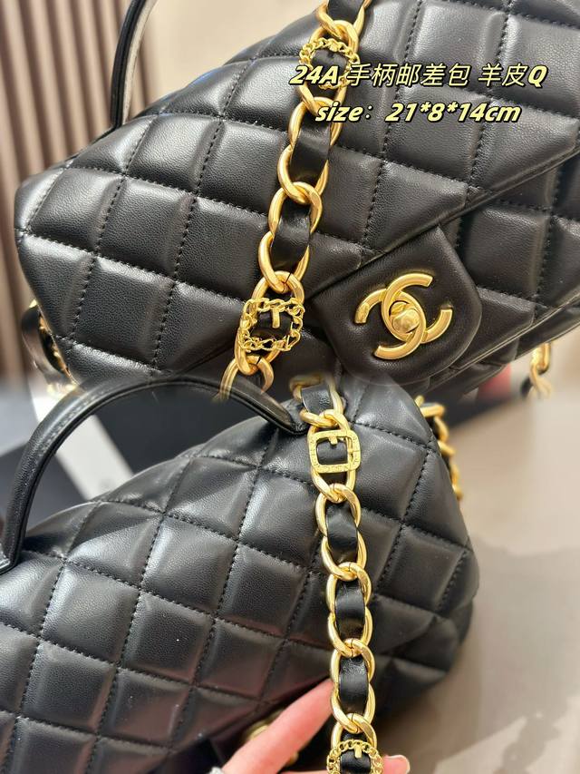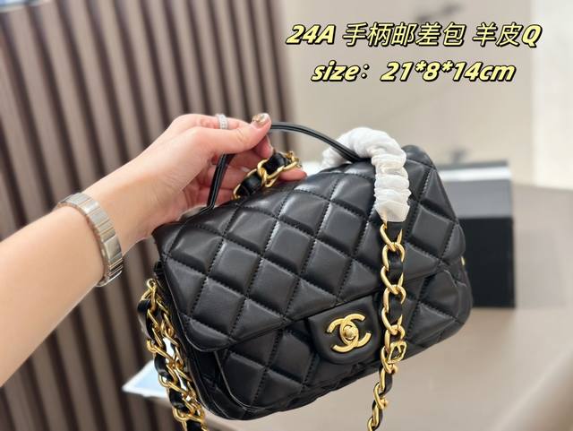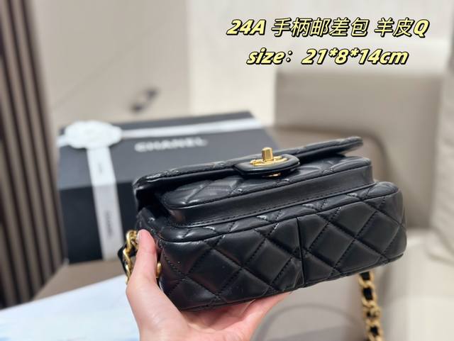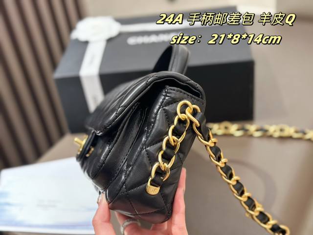 香奈儿24A邮差包小号金扣单肩包