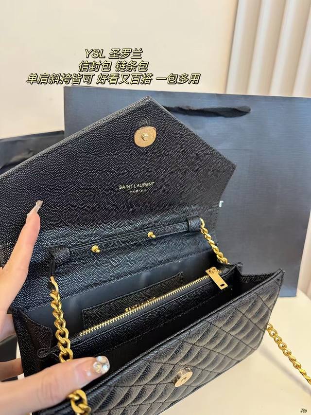 配盒 Ysl 圣罗兰 链条包 信封包ysl家当之无愧的入门经典 款可手拿,斜挎,单肩,腋下,一包多用,小巧静致,耐磨耐脏,上身很轻便,Logo也十分亮眼,实属百