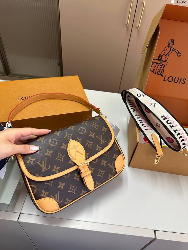 批290独家实拍-升级版 Lv老花配皮 手提单肩斜挎包,型号M68169,配长肩带,2025新款时尚女包单肩包...