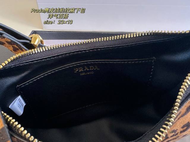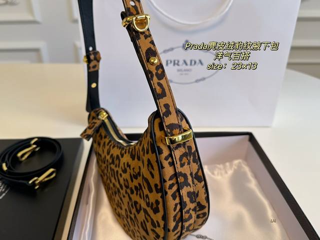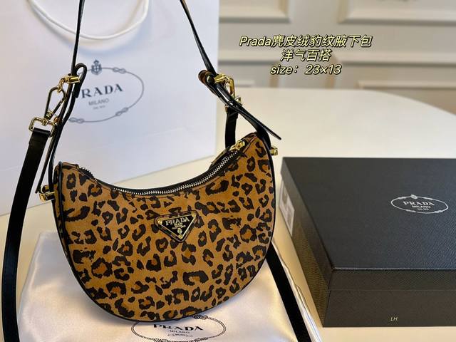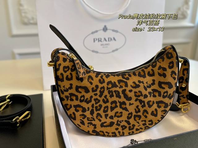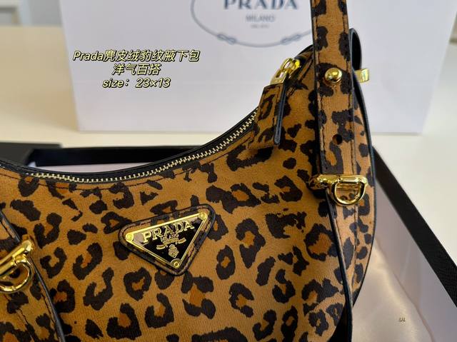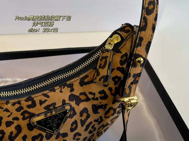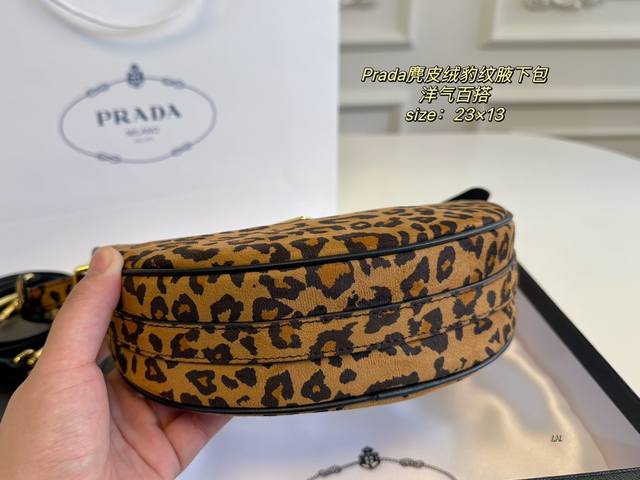 Prada普拉达新款麂皮绒豹纹豌豆腋下包