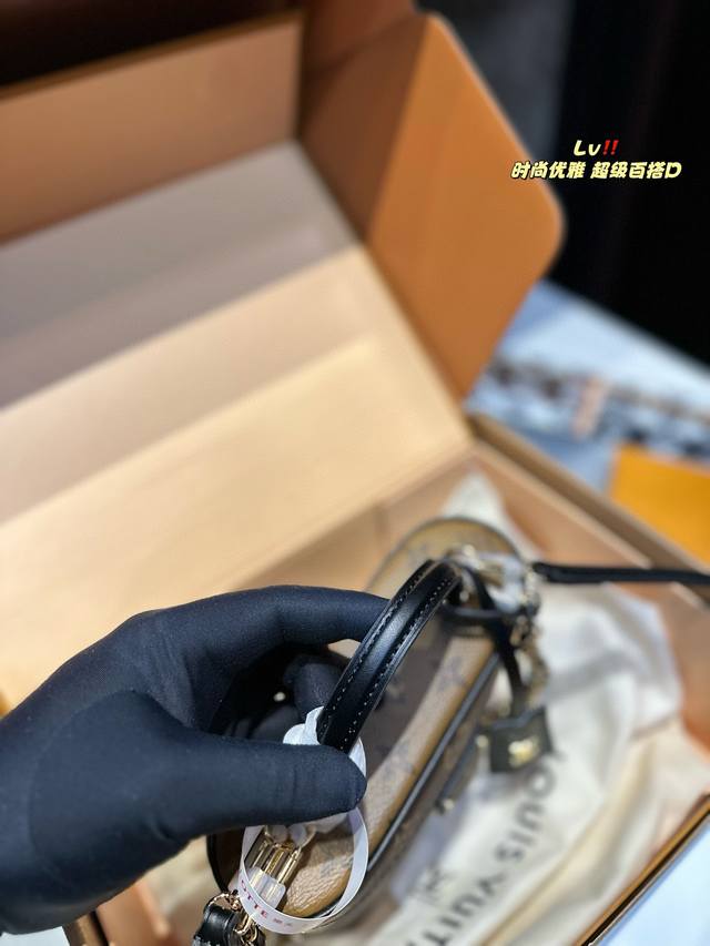 Vanity Chain Pouch 手袋以经典化妆箱为灵感,同样采用 Monogram 和 Monogram Reverse 帆布拼色设计,可拆卸编织链条融入皮革细节,与金色 Lv铭文挂锁相互映衬。尺寸19 12Cm