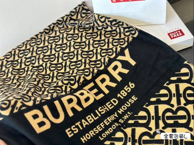 全套包装 Burberry围巾 嗨!寒冷的冬天来了,是时候为你的穿搭加上一抹亮色!这款围巾简直太魔法了,不仅能保暖还能让你立即成为时尚焦点!搭配外套、毛衣或裙子