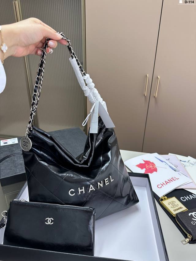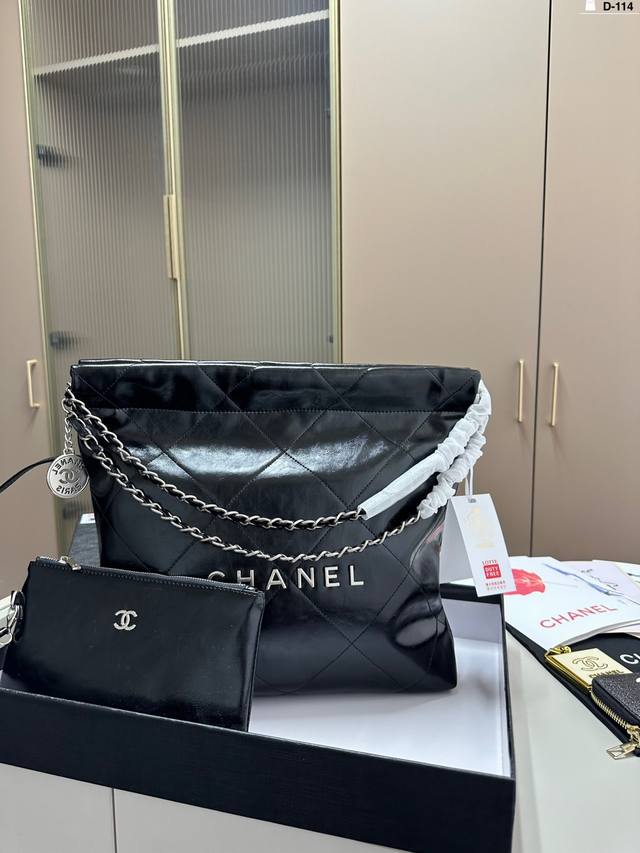 Chanel香奈儿垃圾袋 配卡包+小镜子 很耐造 更酷噢高级感拉满 D-114尺寸29.8.30折叠盒