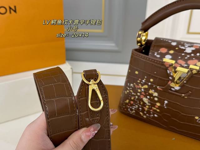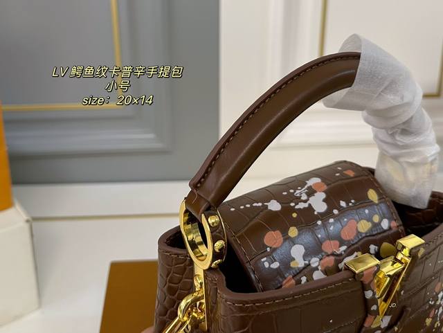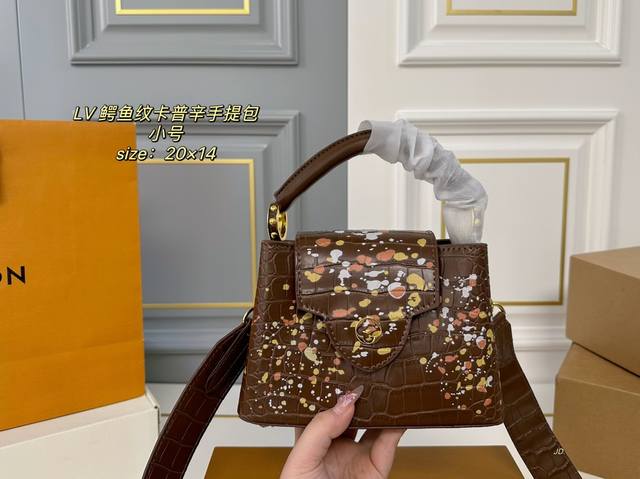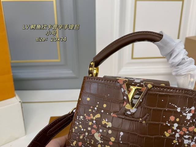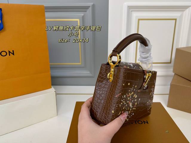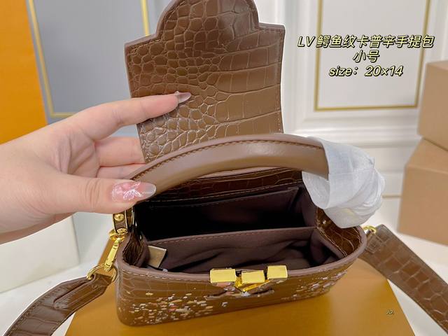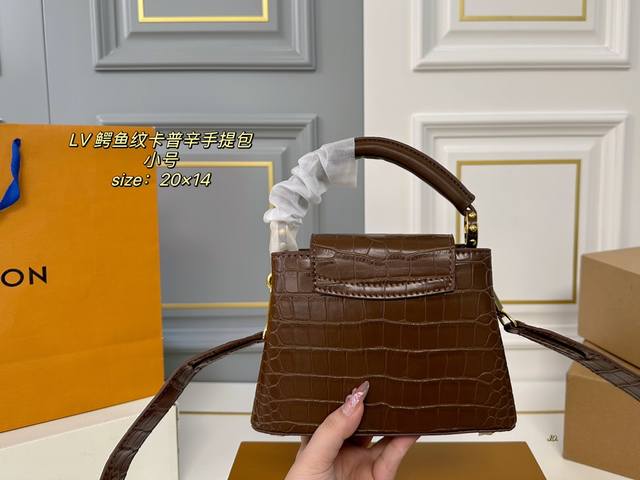 / 小号 折叠盒 Size:20×14 Lv路易威登鳄鱼纹capucines卡普辛手提包 雾面防鳄鱼纹设计 洋气百搭 贵气十足的包包,真的超美! 色彩鲜亮不张扬,显