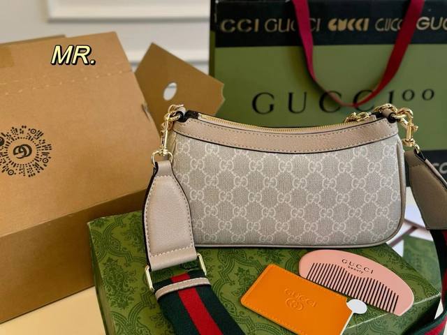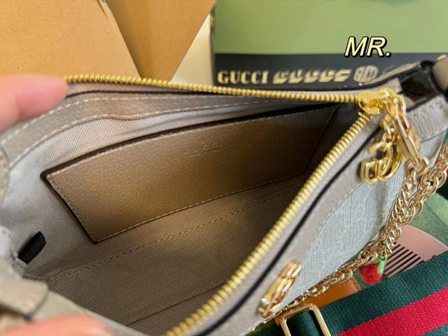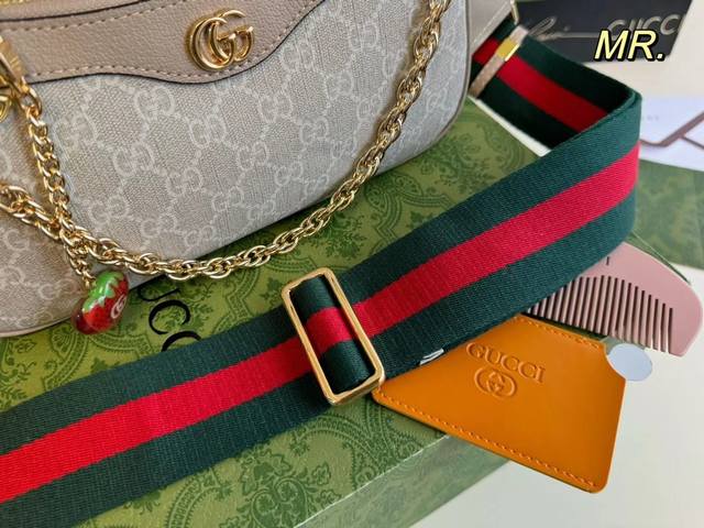 / 芯片版 折叠盒飞机盒 Size:25×13 Gucci 古驰老花小草莓腋下包 包内配有木梳和镜子 方便补妆 标志性红绿肩带搭配金属链条, 精简款更加复古风,性价